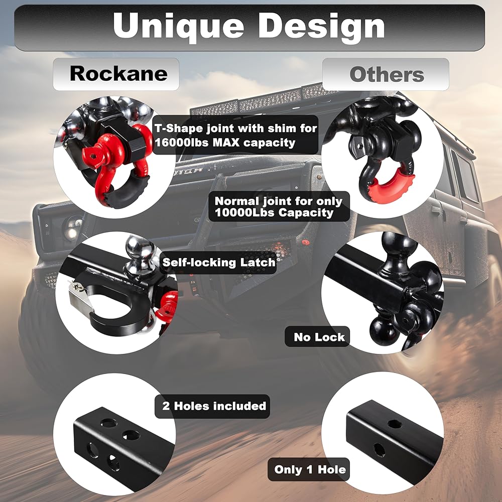 تصميم فريد على شكل حرف T: وصلة ربط 3 كرات وسلسلة سحب 360 درجة 3/4 بوصة مع مفصل على شكل حرف T بسعة قصوى تصل إلى 16000 رطل. متعددة الاستخدامات للقطر.