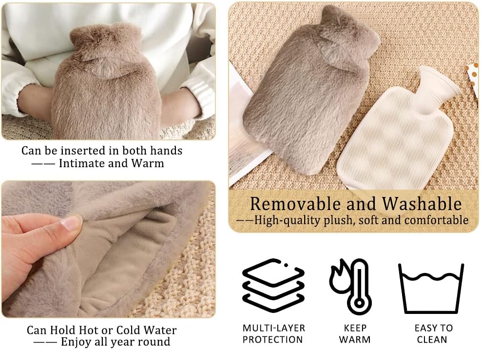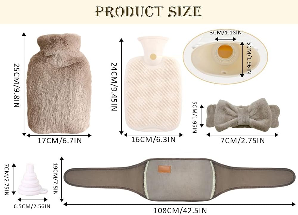 ❤️ مجموعة أكياس زجاجات الماء الساخن: سوف تحصل على 1 × زجاجة مياه ساخنة مطاطية، 1 × غطاء كشمير لزجاجة ماء ساخن، 1 × غطاء خصر ناعم، 1 × قمع و1 × عصابة رأس. مجموعة زجاجات الماء الساخن هي أفضل هدية لكبار السن والأصدقاء لإبقائهم باردين في الصيف الحار ودافئًا في الشتاء البارد.