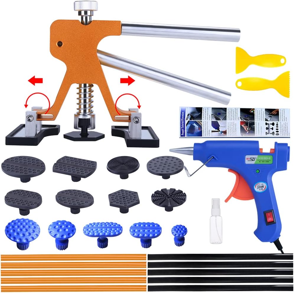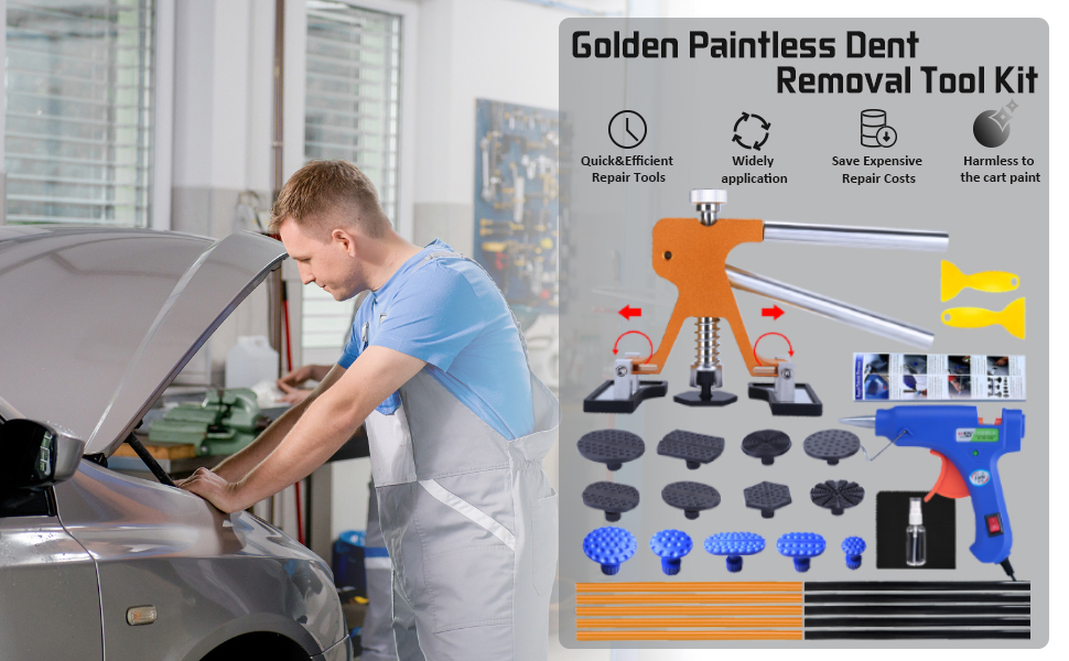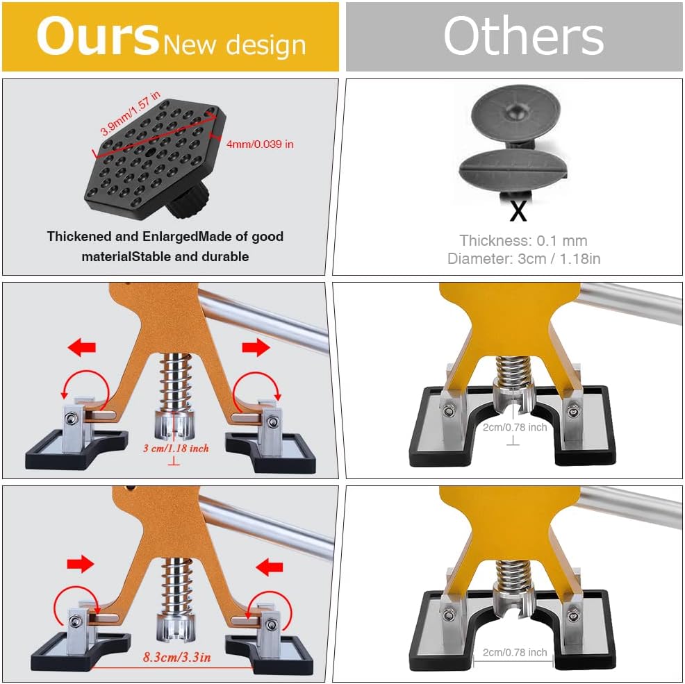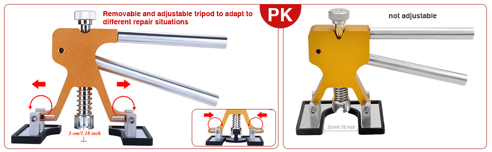 🚗【تصميم مطور】استخدام مبدأ الرافعة المالية لتصميم أداة سحب الدنت هو أمر مريح، ويمكن لرافعة الدنت الذهبية الفريدة من نوعها تعديل ارتفاع أكثر من 1 سم وعرض أكثر من 3.8 سم. يمكنك ضبط الوضع الثابت والمسافة لتناسب الخدوش ذات الأحجام المختلفة، بكفاءة وتوفير العمالة.