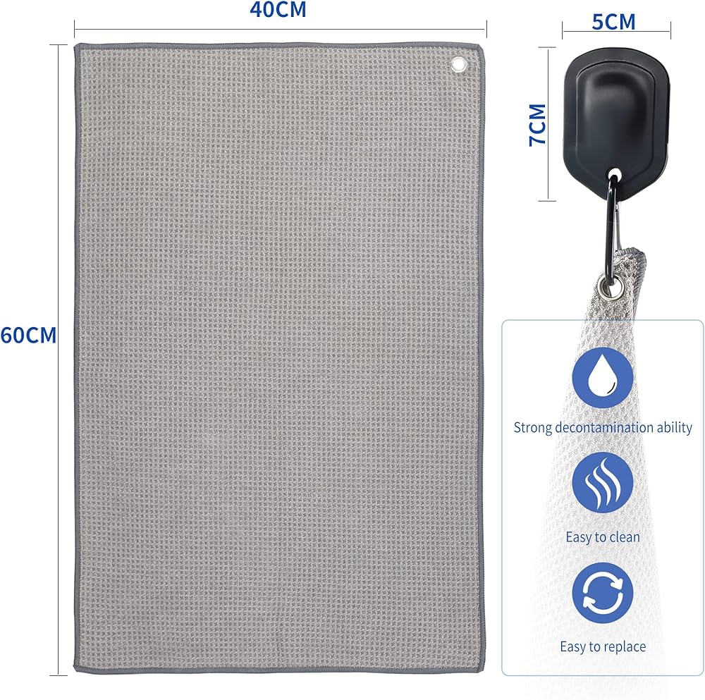 • ✅Versatile Usage : The magnetic golf towel can be used in a variety of ways. It can be used to wipe away sweat, dirt, and grass stains on your clubs, as well as your golf ball. It can also be used to clean your golf clubs, grips, and shoes.They can also be used for other sports, such as tennis, basketball, soccer, and more. They are perfect for drying sports equipment and keeping your hands clean