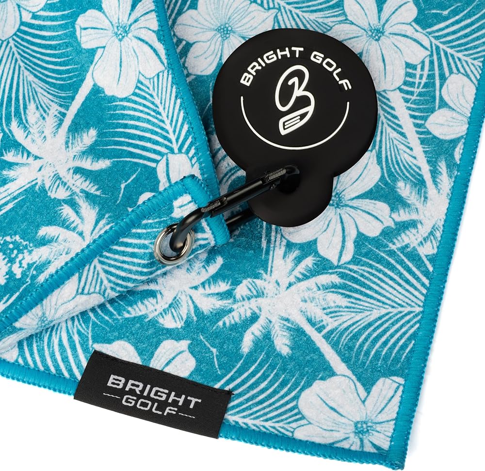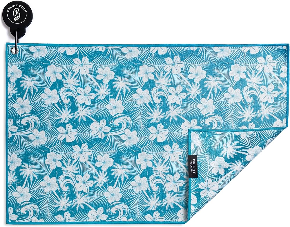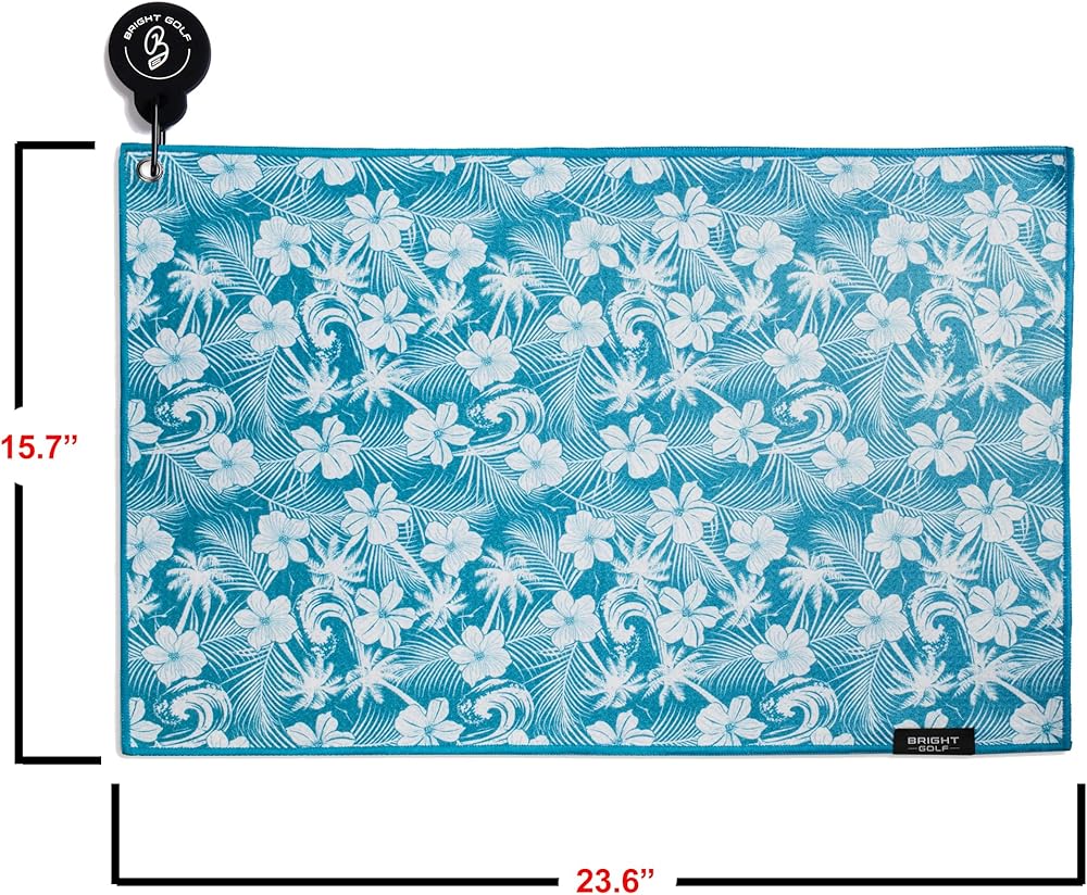 The Bright Golf Blue Hawaiian 16 x 24 inch magnetic golf towel makes a perfect golf gift. This microfiber golf towel will look great on the golf course. Offered in beautiful floral and tropical prints these golf towels are sure to get noticed on the golf course. Each towel comes with a carabiner clip that makes it easy to hang your golf towel on your golf bag. The durable microfiber waffle weave texture makes cleaning your golf ball and golf clubs easy. These golf towels are machine washable, fade resistant and they dry quickly. The towels are super absorbent so you can wet them before you play, so they are ready to clean your golf equipment. These beautiful golf towels make great gifts for Mother's Day, Father's Day, Valentines Day or as a Christmas gift for your favorite golfer. Available in several bright Hawaiian and Tropical designs.