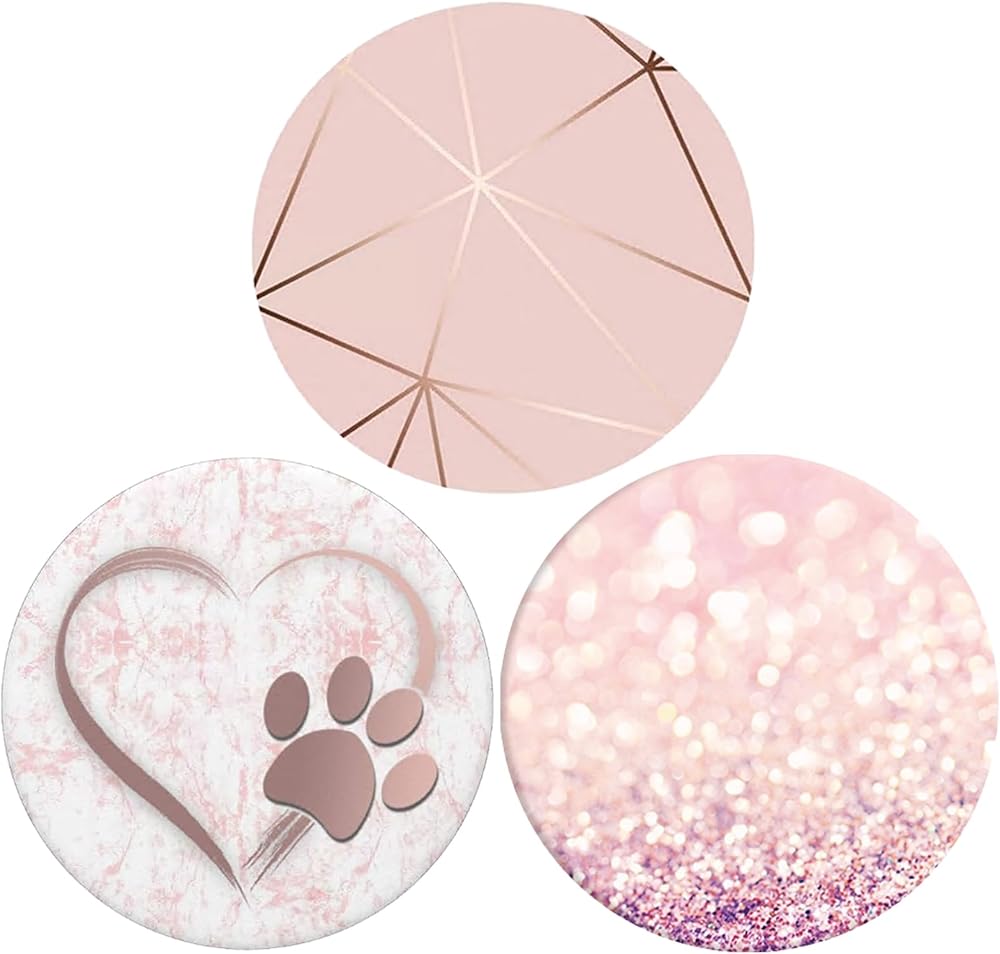 حامل هاتف قابل للطي بمقابض دوارة 360 درجة للهواتف والأجهزة اللوحية (3 عبوات) - قلب أبيض وذهبي وردي ورخام هندسي وذهبي وردي