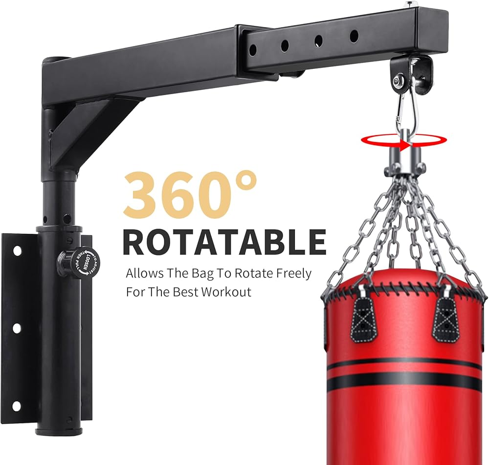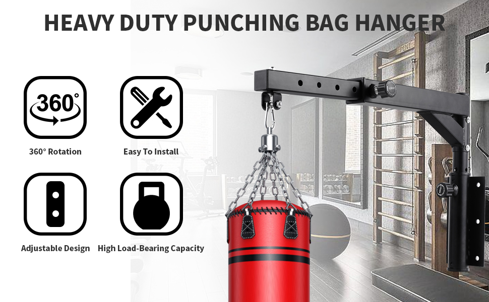 قابلة للدوران 360 درجة - تستخدم شماعة حقيبة الملاكمة خطافًا دوارًا 360 درجة مع محامل كروية داخلية لأي زاوية، دوران ثابت وهادئ. مناسبة للتعليق بأحجام مختلفة من أكياس الملاكمة وحقائب الملاكمة التايلاندية وأكياس الرمل وما إلى ذلك.