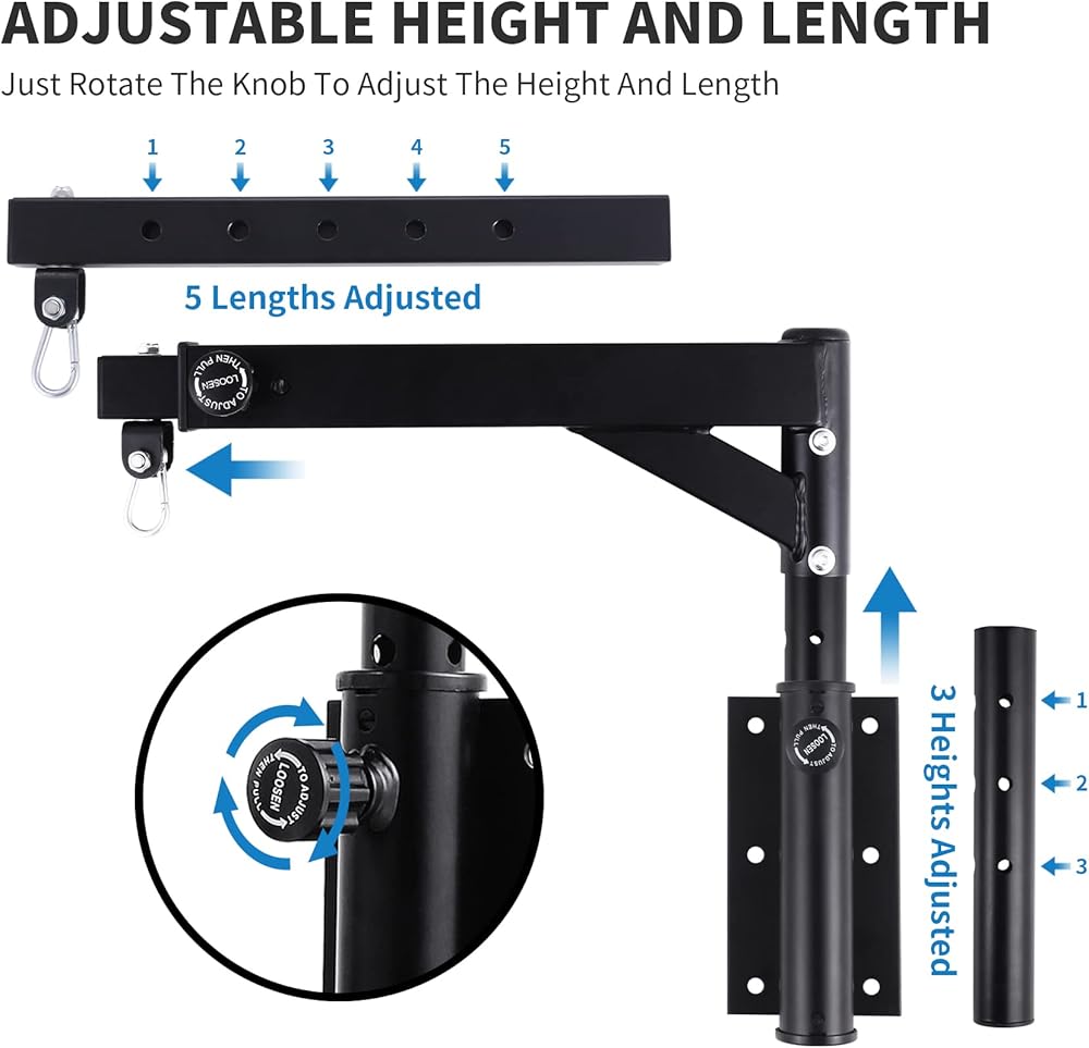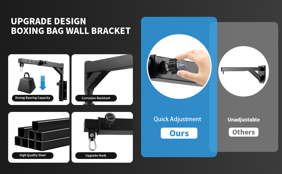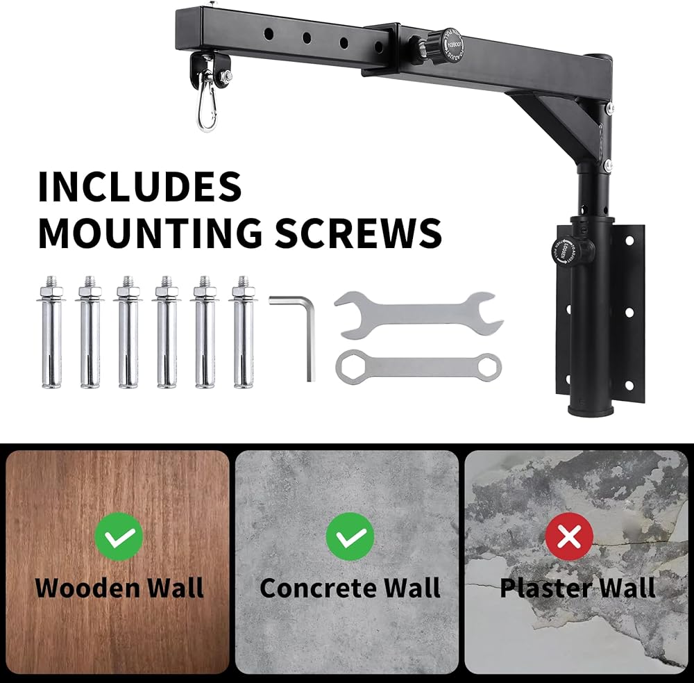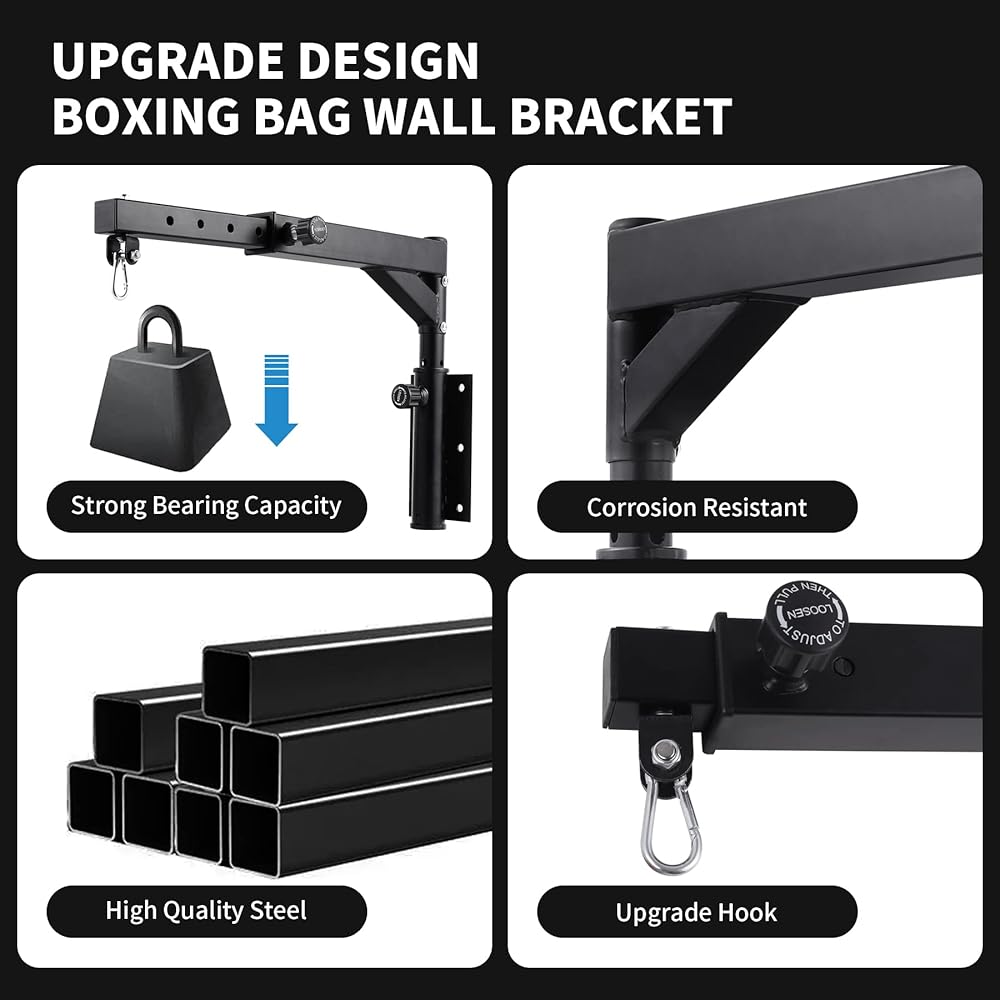 سهلة التركيب - يأتي حامل كيس اللكم الخاص بنا على الحائط مع 6 براغي خشبية، و6 أكمام توسيع وأداتين للتركيب. يمكنك تركيبه بسهولة على جدار خشبي أو خرساني. يرجى التأكد من أن الجدار ثابت عند التثبيت.