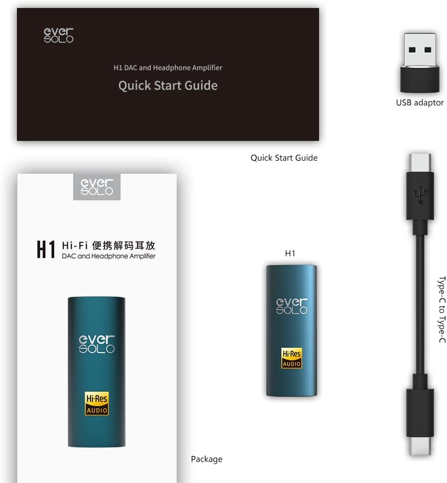 مضخم سماعة الرأس المحمول EVERSOLO H1 وDAC ES9281AC Pro عالي الدقة يدعم PCM 384 كيلو هرتز/32 بت DSD256 MQA 3.5 ملم مخرج سماعة الرأس للهواتف الذكية/الكمبيوتر اللوحي/الكمبيوتر الشخصي التي تعمل بنظام Android