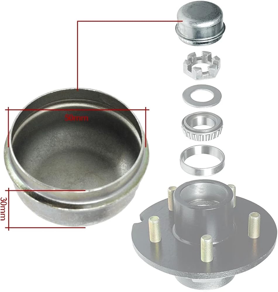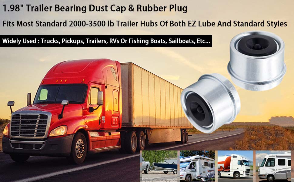 🔧【الحجم ومتوافق مع】: يناسب معظم محور عجلات المقطورة القياسية 2000 - 3500 رطل لكلا النوعين من المحاور EZ Lube والمعيارية. تناسب محاور الفرامل القياسية والمقطورة الوسيطة لمعظم محاور 4 و5 عروة مع غطاء قطره 1.98 بوصة