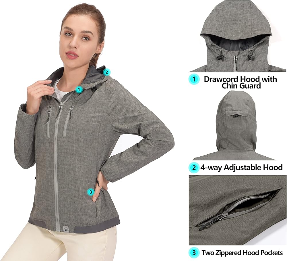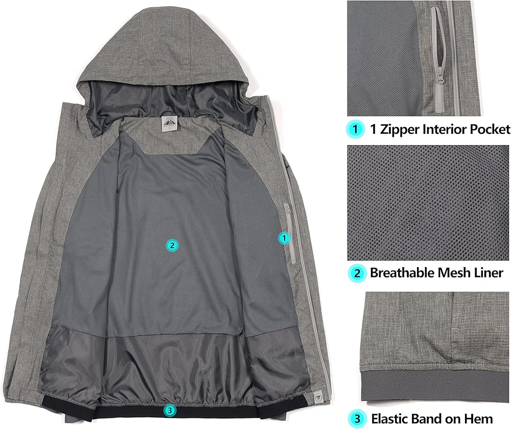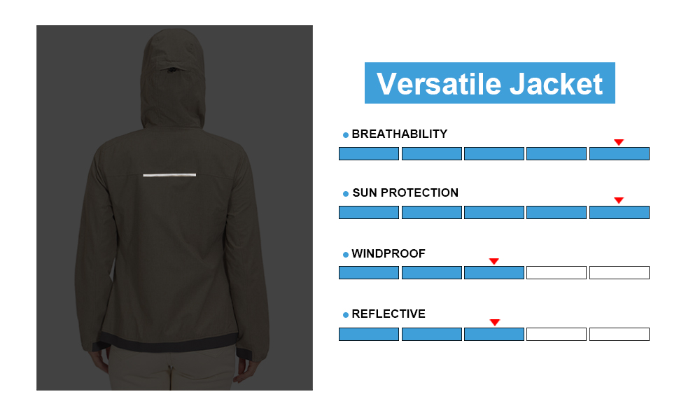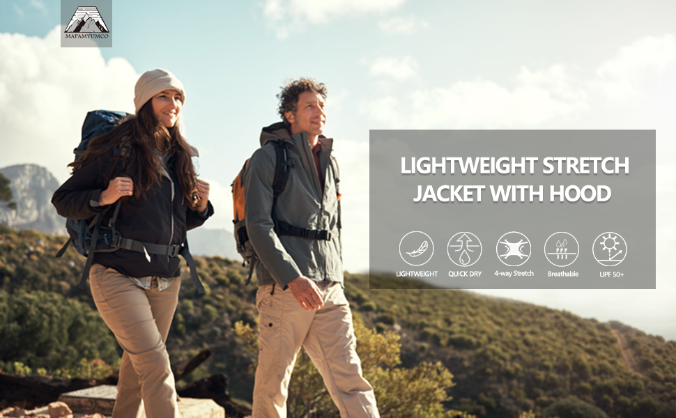 خفيف الوزن وجيد التهوية - سترة بسحاب كامل مع غطاء رأس مصنوعة من نسيج خفيف الوزن ومطاط في 4 اتجاهات، وبطانة شبكية تهوية وتحافظ على جفافك.