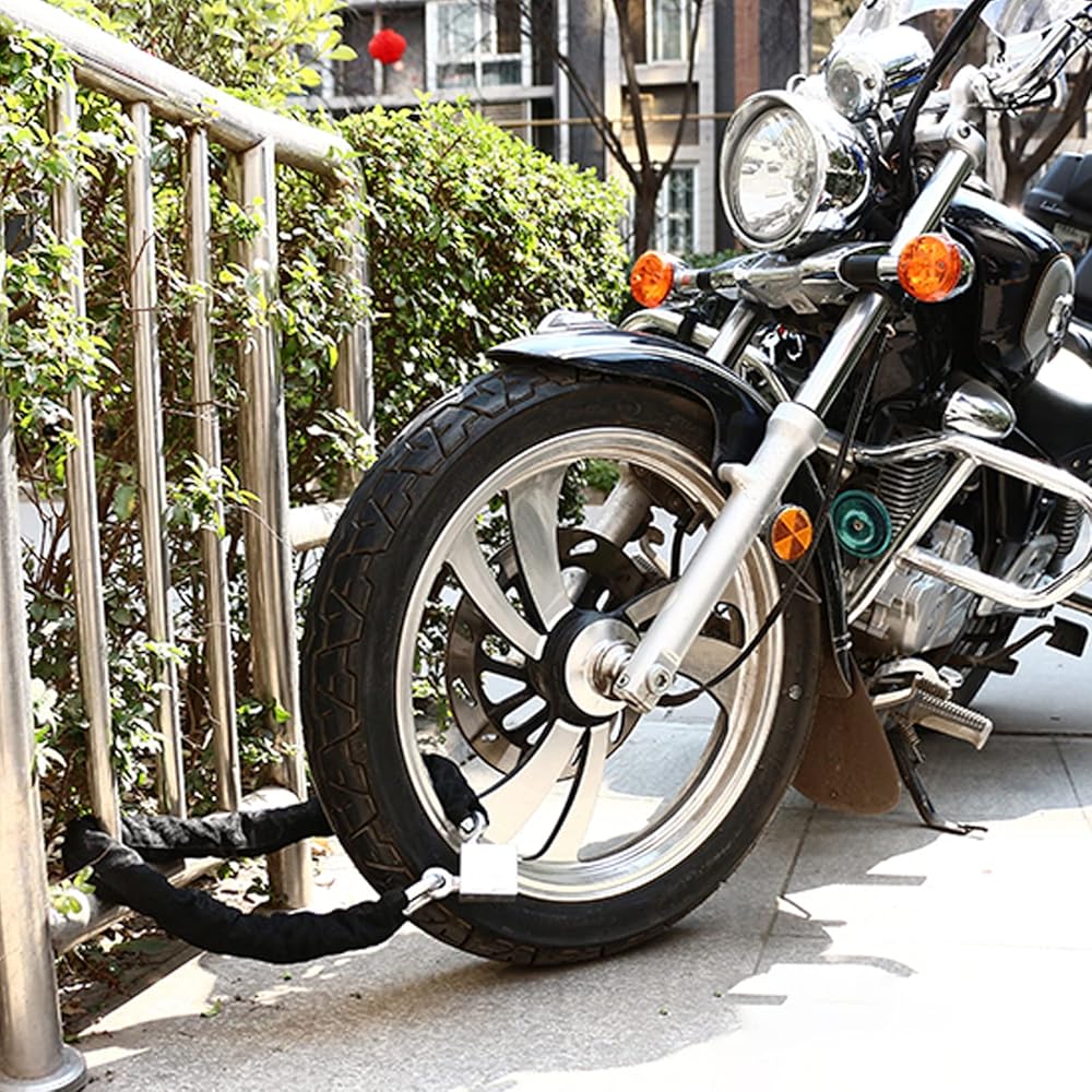 【استخدام واسع】: يمكن استخدام قفل السلسلة للدراجات والدراجات النارية والمعدات الرياضية والجراجات والمزارع والأسوار وما إلى ذلك. يستخدم على نطاق واسع ويتمتع بأمان جيد.