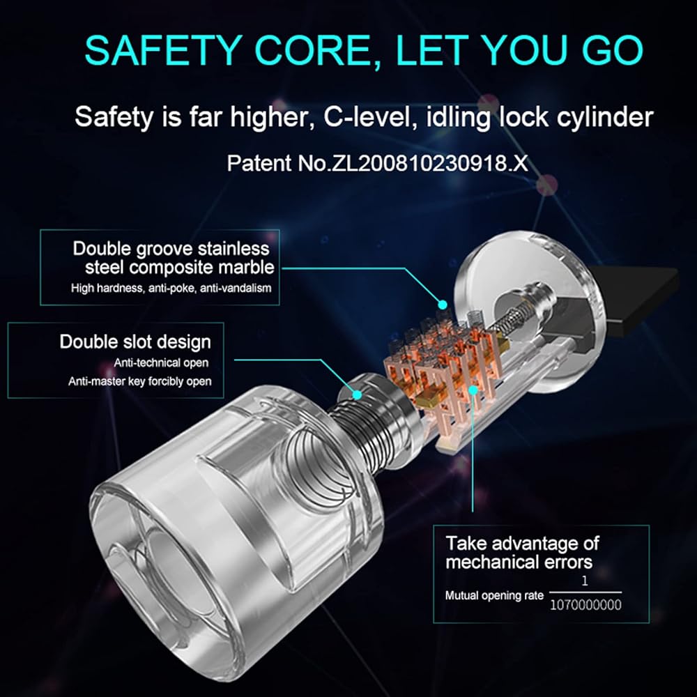 【تصميم أساسي للقفل الفريد】: تقنية القفل الأساسية الأصلية في العالم، لا يحتاج فتح القفل إلى تحريف المفتاح، وتخريب مفهوم القفل الأساسي التقليدي، والقفل المضاد للتكنولوجيا، والفتح القوي للمفتاح المضاد للسيد.