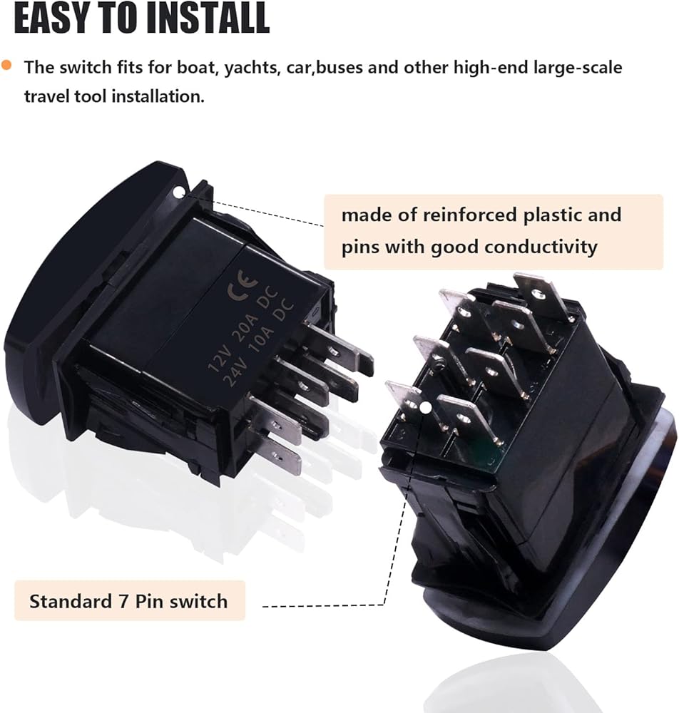 7 دبوس لحظة ونش داخل / خارج الروك التبديل الأحمر LED DPDT 20A / 12V 10A / 24V DC تبديل التبديل الليزر تشغيل / إيقاف / تشغيل مع أسلاك الطائر ل ATV UTV سيارات البحرية قارب M-108-R