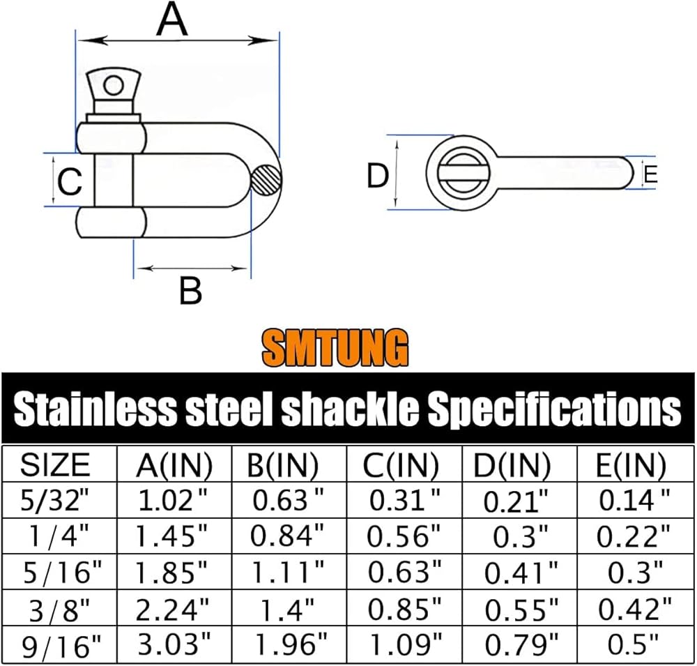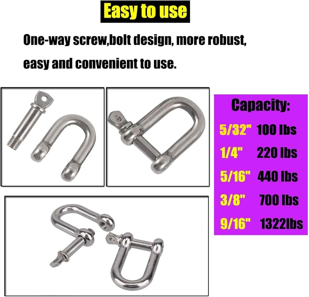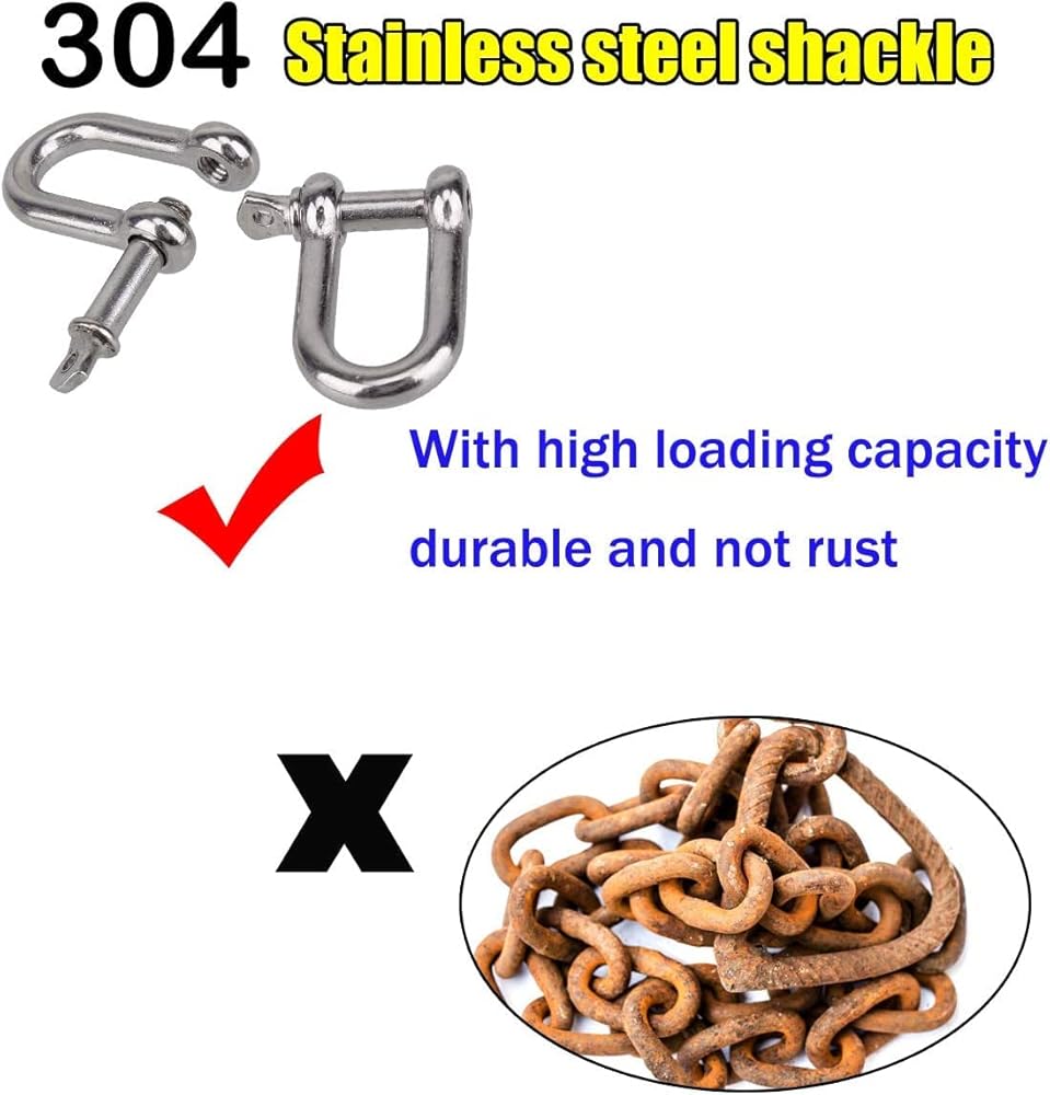• 【MATERIAL】(D) shackles,Made of 304 stainless steel that protects against Rusty and corrosion,Equipped with smooth surface and free burr, safe and reliable to use, also can be used freely in rain.