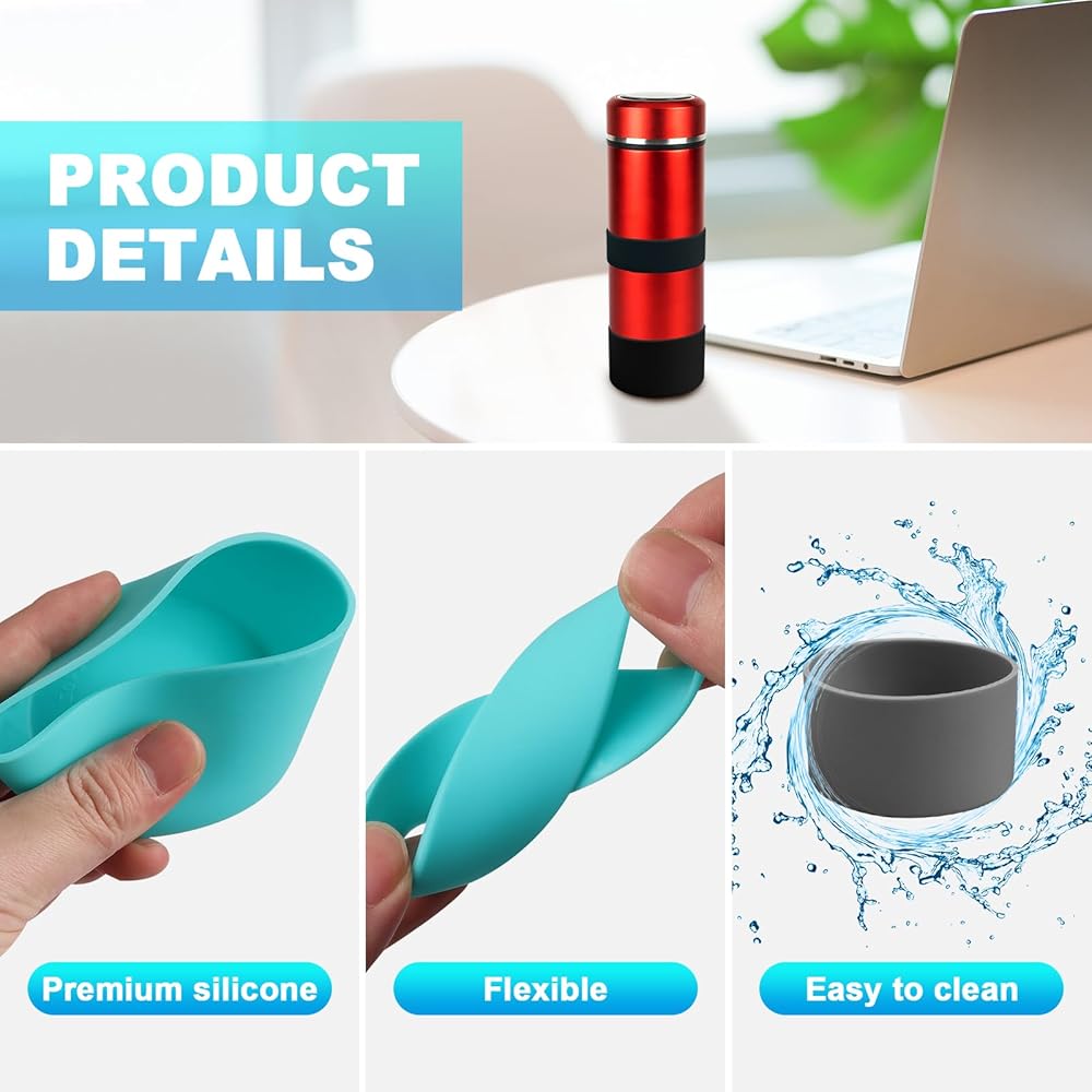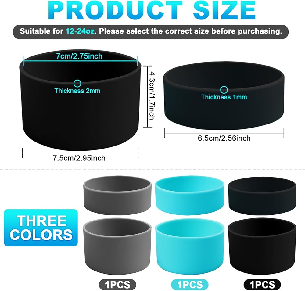 استخدام واسع: يعمل حذاء السيليكون الواقي الخاص بنا بشكل جيد مع معظم زجاجات المياه بوزن 12-24 أونصة، يرجى التحقق من المقاس قبل الشراء! تعتبر مجموعات أكواب السيليكون هذه مثالية للمشي لمسافات طويلة والتسلق والمكتب والمدرسة والتخييم وغيرها من المناسبات لحماية كوب الماء الخاص بك.
