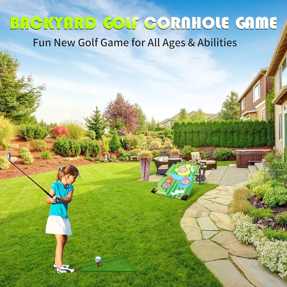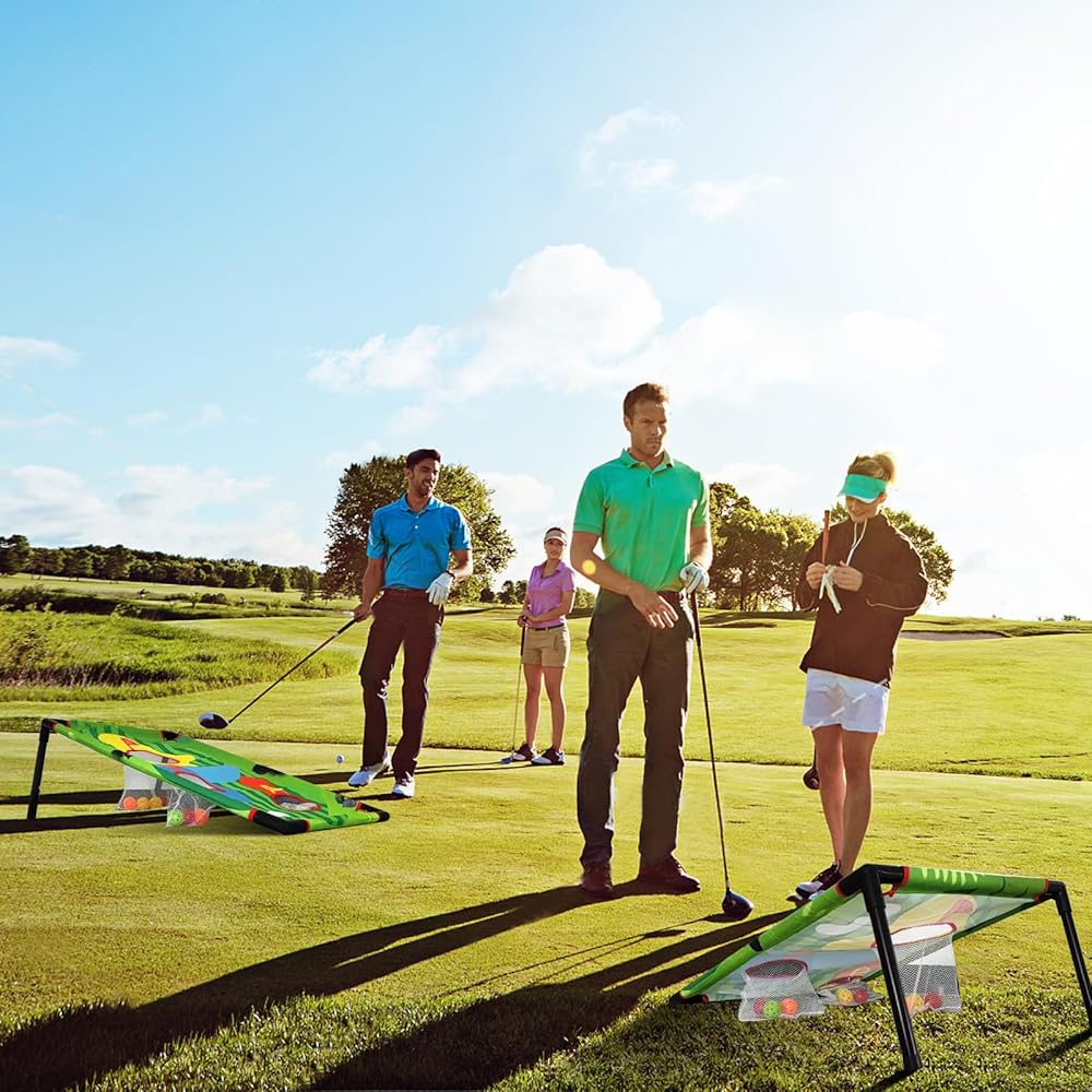 Retouhqp Golf Cornhole Set Golf Chipping Net Golf Hitting Net Systems, Golf Yard Game Chipping Practice Set for Both Indoors and Outdoors