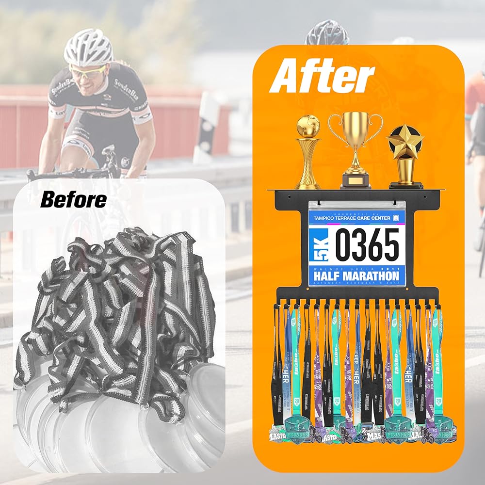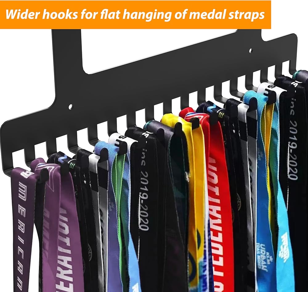 🏆【تأثير عرض إضافي】: يمكن لرف عرض شماعة الميداليات أن يوفر طريقة منظمة وأنيقة لعرض الميداليات، مما يجعل رؤيتها وتقديرها أسهل. يمكن أن يساعد في حماية الميداليات من التلف أو الفقدان، ويسهل العثور عليها وعرضها.