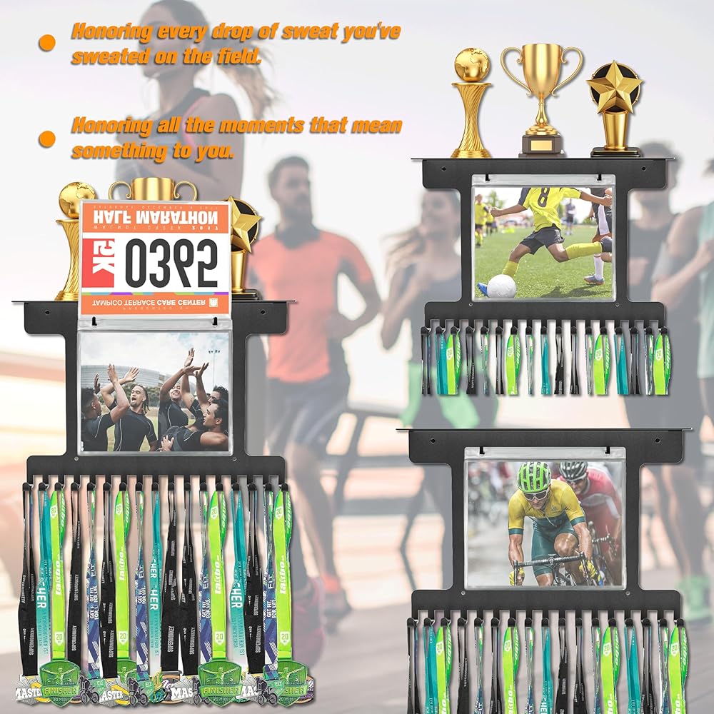 🏆[اختيار الهدية]: يمكن أن يكون رف عرض الميداليات خيارًا رائعًا للهدايا، معبرًا عن تقديرنا وتقديرنا لإنجازات أصدقائنا، وهو نوع من التشجيع والتحفيز.