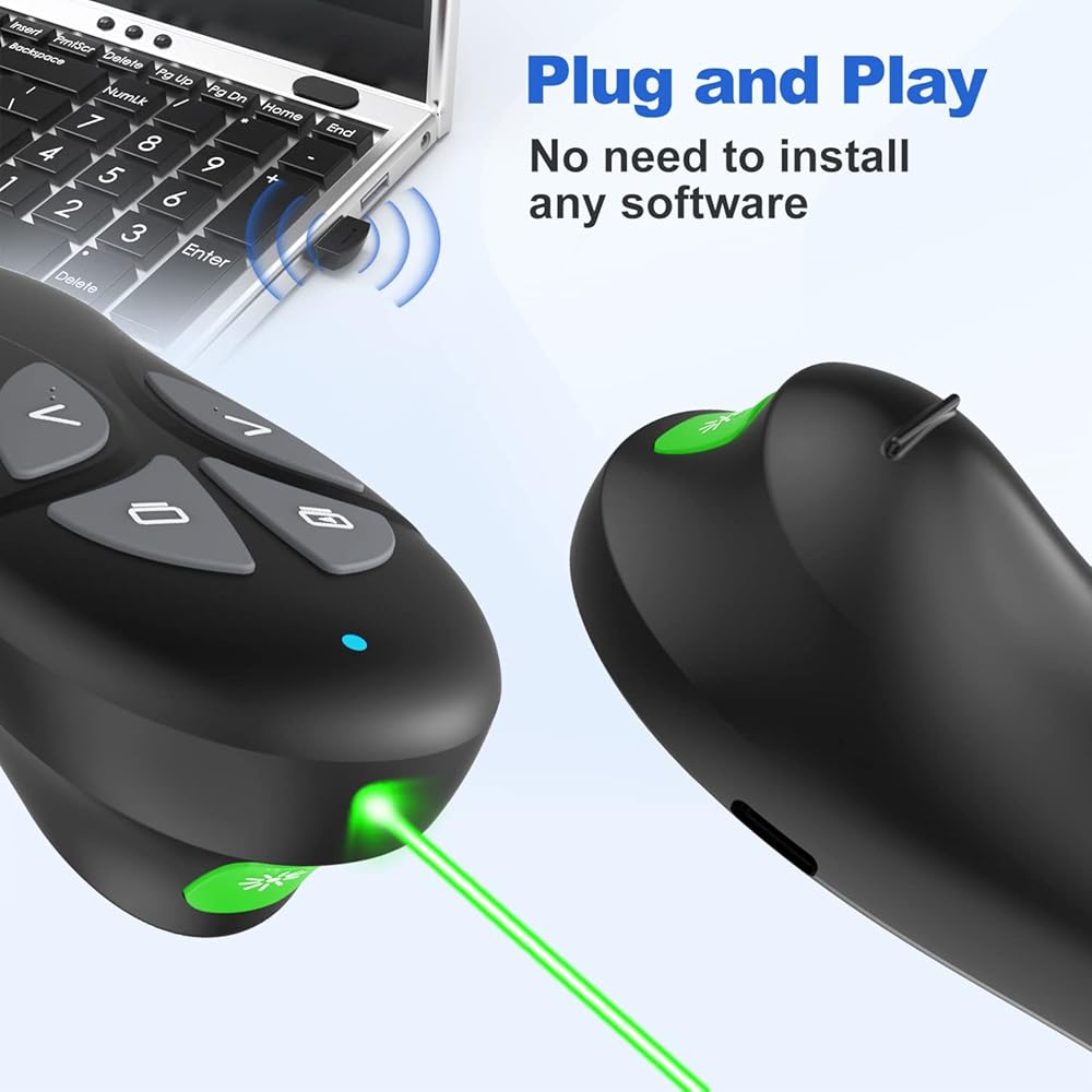 [مريح ومذهل] تتميز أداة النقر الخاصة بعروض PowerPoint التقديمية بملمس ناعم ولكن قابل للإمساك بها، لذلك لا داعي للقلق بشأن انزلاقها من يديك أيضًا. إن مُقدم الشرائح صغير بما يكفي لوضعه في جيبك بشكل سري أثناء الأسئلة والأجوبة.