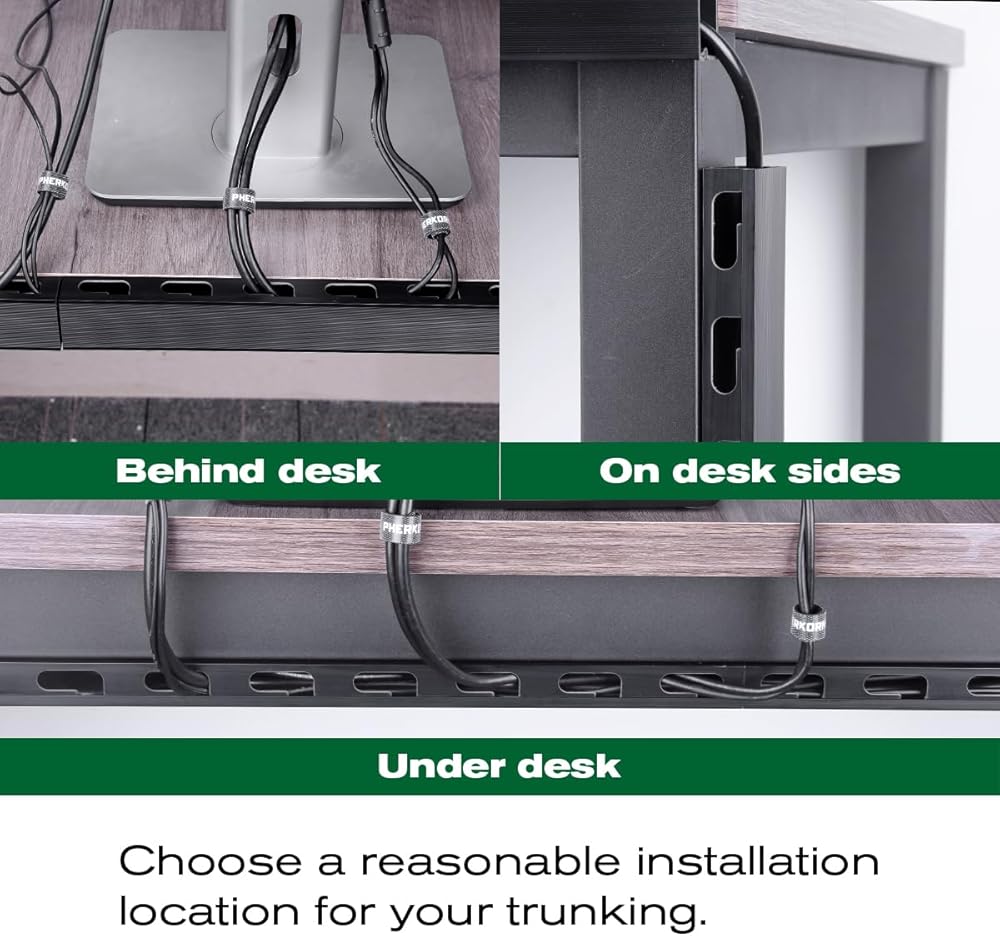 مجموعة نظام إدارة الكابلات من PHERKORM، إدارة الكابلات تحت المكتب، إدارة الأسلاك، إدارة الأسلاك، مسار الكابل الأسود