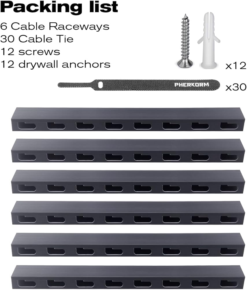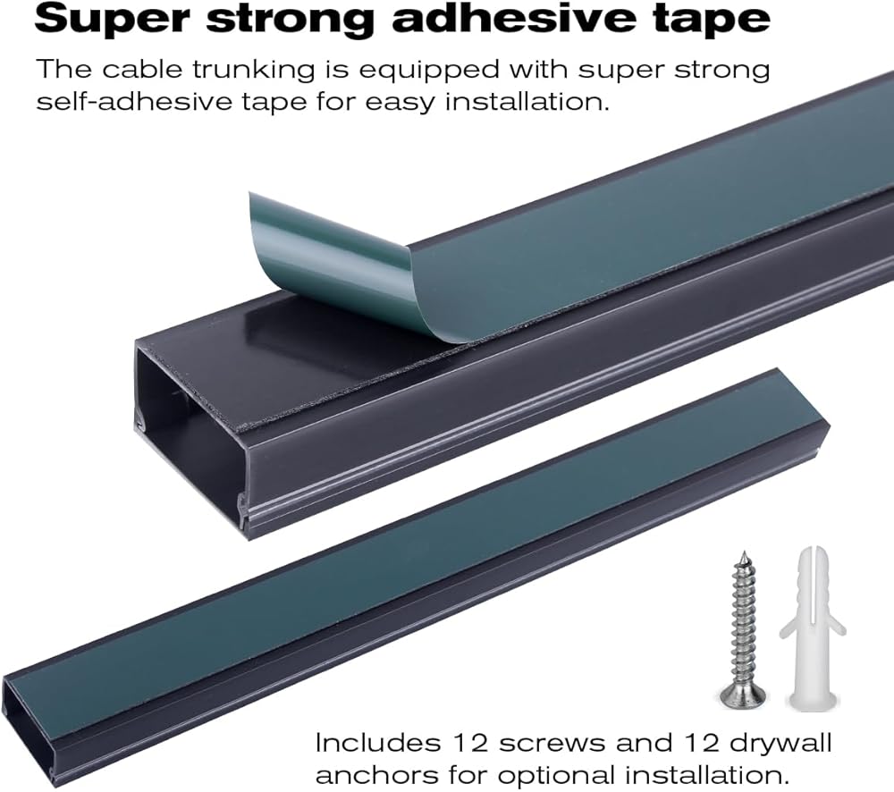 تركيب سريع وسهل - تأتي قنوات الكابلات مع شريط لاصق ذاتي قوي لسهولة التركيب. تتضمن 12 براغي و12 مرساة للجدران الجافة للتركيب الاختياري. يمكنك اختيار استخدام شريط التقشير واللصق أو مثبتات الحوائط الجافة مع البراغي وفقًا لظروف سطحك، وهي رائعة لإدارة الكابلات لأجهزة التلفزيون أو الشاشات المثبتة على الحائط.