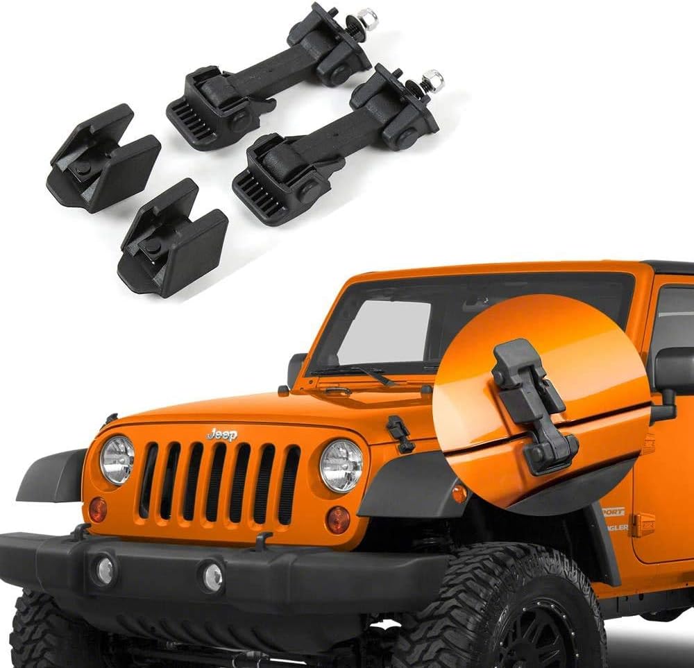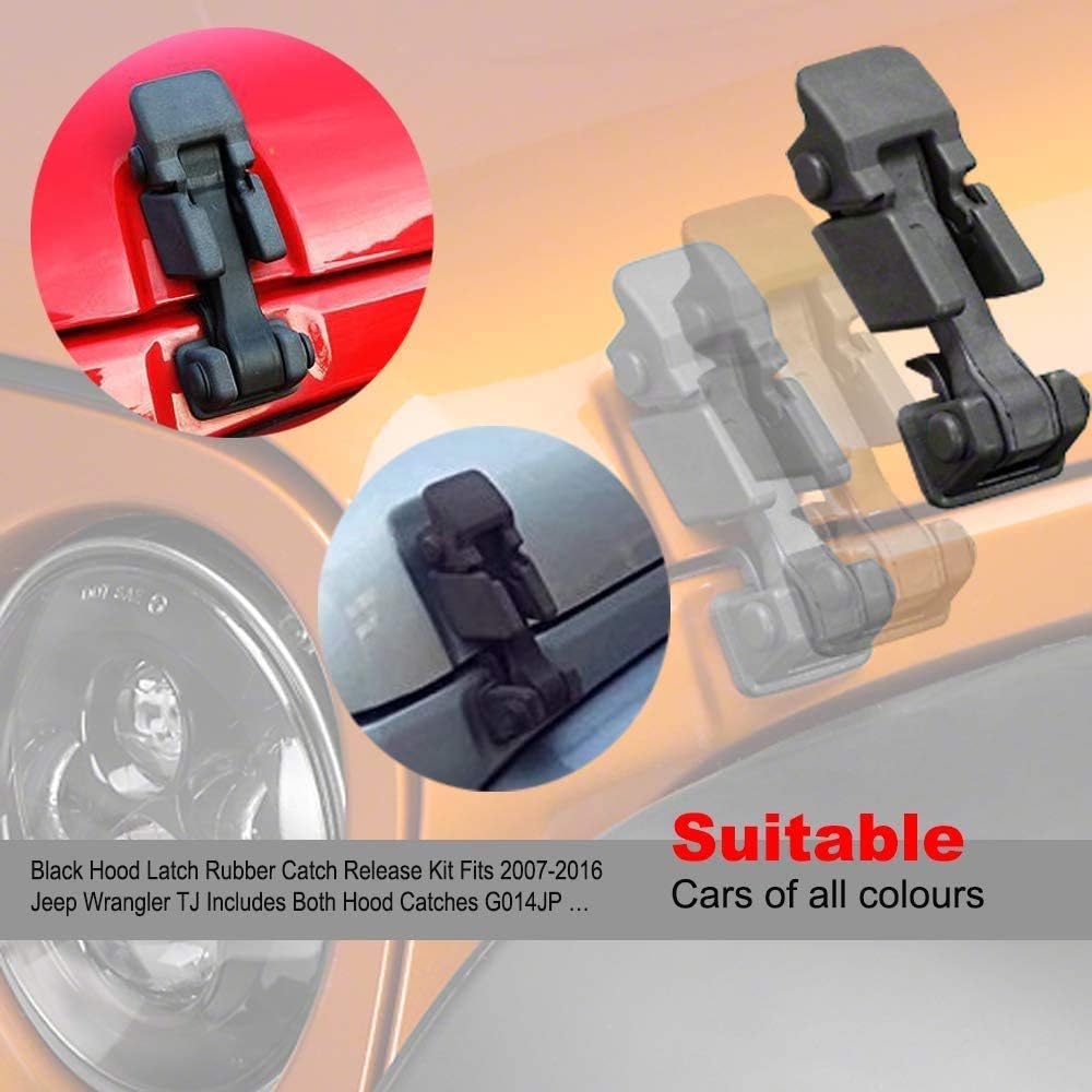 مجموعة أدوات تحرير مزلاج غطاء محرك السيارة الأسود تناسب سيارات جيب رانجلر TJ 2007-2016 تتضمن كلا من مقابض غطاء المحرك G014JP