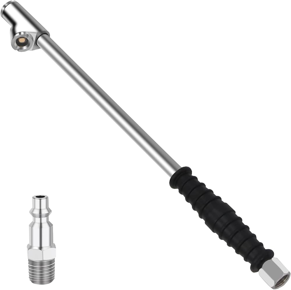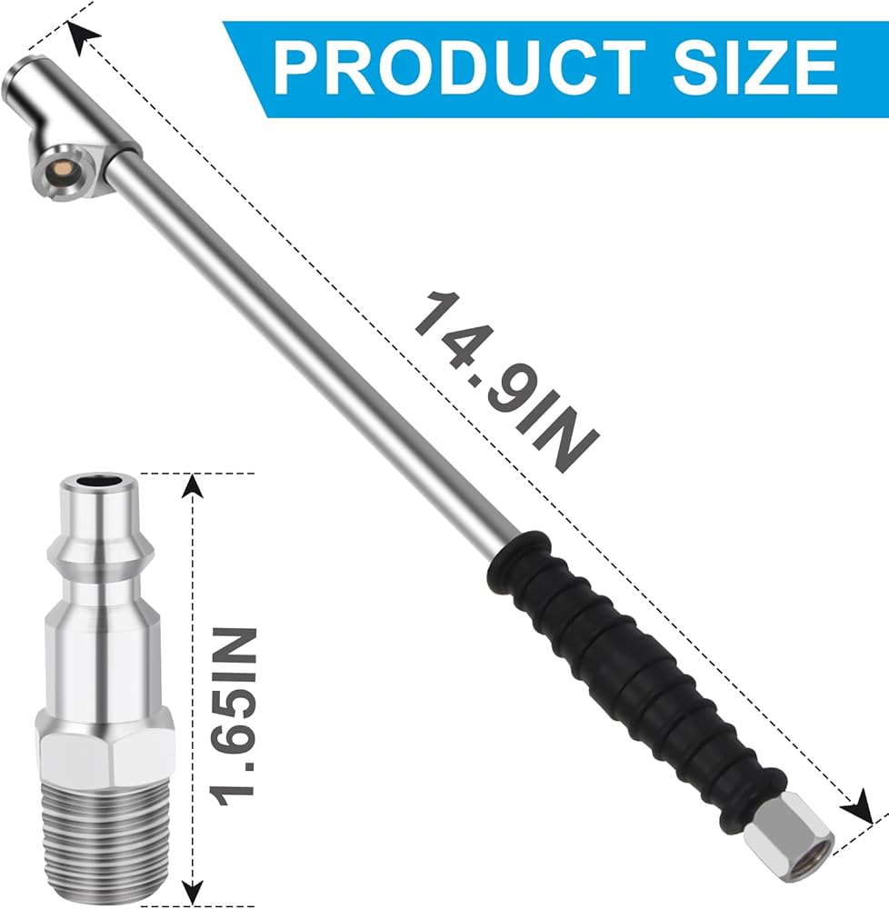 ظرف هواء مزدوج الرأس FNPT ممتد 1/4 بوصة، اتصال ثنائي الاتجاه، ظرف هواء ممتد 14.9 بوصة مع مقبض مطاطي، ظرف إطار مع قابس سريع للإطارات شبه، RV، الشاحنة المزدوجة
