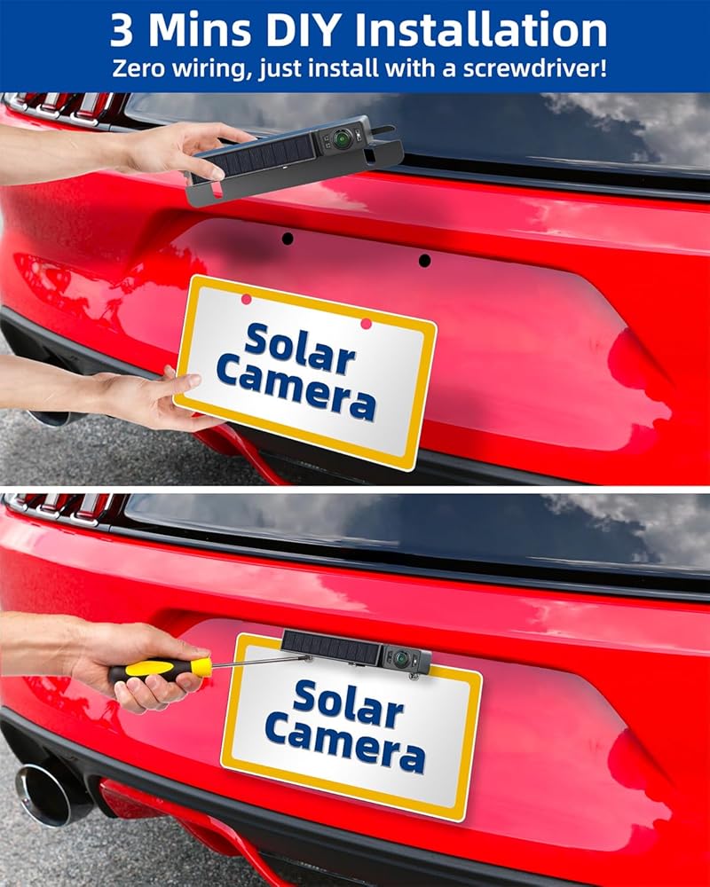 【 تركيب سريع لمدة 3 دقائق 】لا توجد أسلاك، ولا حفر، ولا حاجة لتوصيل مصابيح السيارة. مجرد مفك براغي واحد لإصلاح كاميرا ECOCONUT Solar Backup على لوحة الترخيص الخاصة بك في غضون 3 دقائق. افعل كل شيء بنفسك بسهولة.