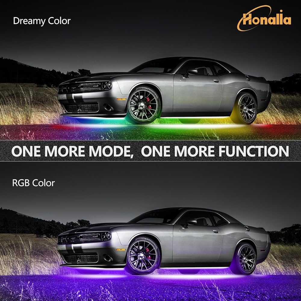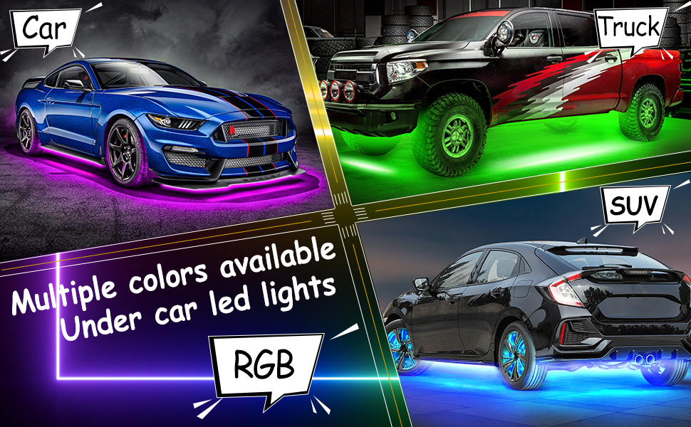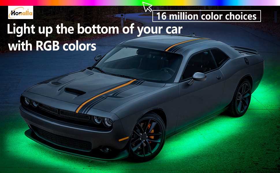 تأثيرات الإضاءة الأنيقة: تحتوي مصابيح السيارة أسفل السيارة على 240 مصباح LED RGB ساطع في المجمل. أكثر سطوعًا، وأكثر متانة، وأكثر كفاءة في استخدام الطاقة. مع 16 مليون مؤثر عرض لوني، تكون الإضاءة أنيقة ونقية للغاية. سيحبها الجميع عند الخروج على الطريق. أضف بعض الأناقة إلى شخصية سيارتك وذوقها.