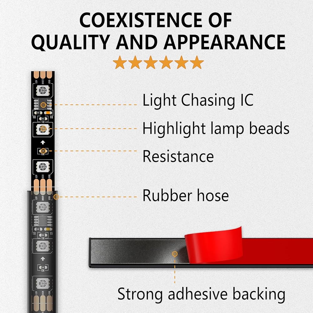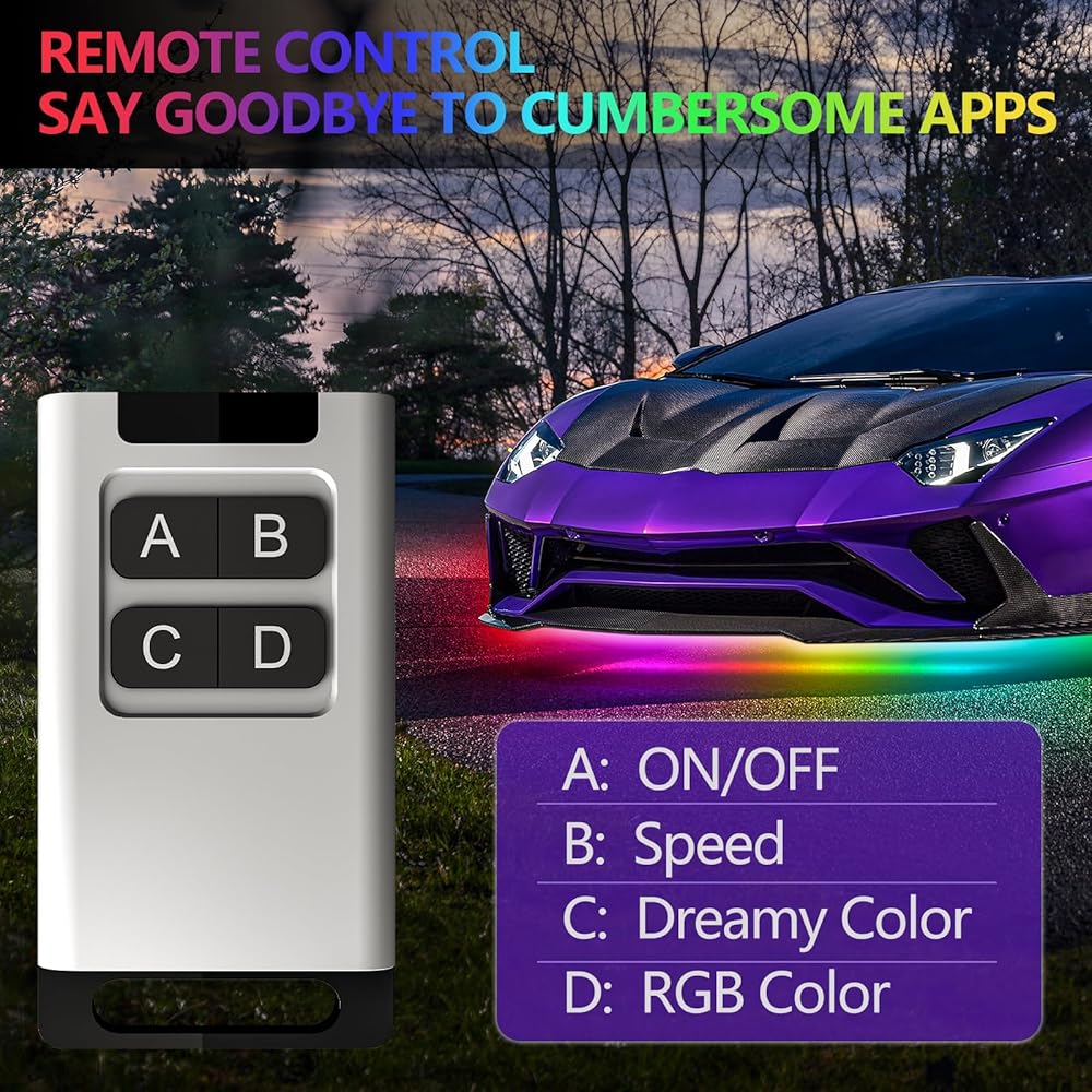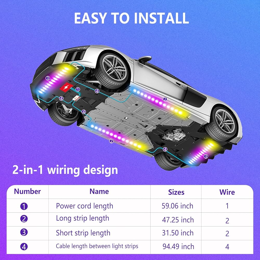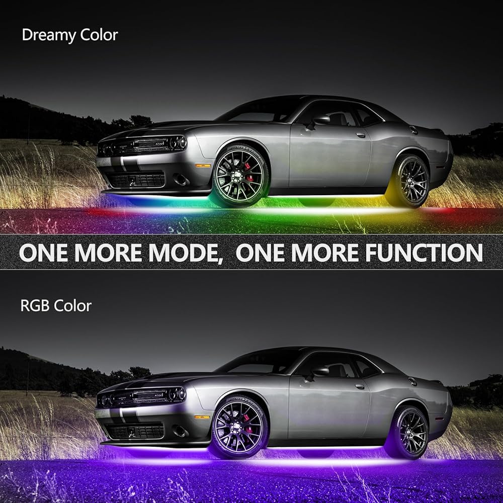 السلامة للاستخدام الخارجي: تأتي شرائط مجموعة Underglow مجهزة برقائق SMD 5050 LED عالية الكثافة وأنابيب مطاطية مرنة. يجعلها مقاومة للغبار، ومقاومة للماء، ومقاومة لحطام الطريق، ومقاومة للخدش لتعزيز السلامة. أنابيب السيليكون تحميهم من الظروف الجوية المختلفة. تتضمن مجموعة إضاءة السيارة تحت التوهج أيضًا فتيل تنظيم الجهد لمنع حدوث دوائر قصيرة.