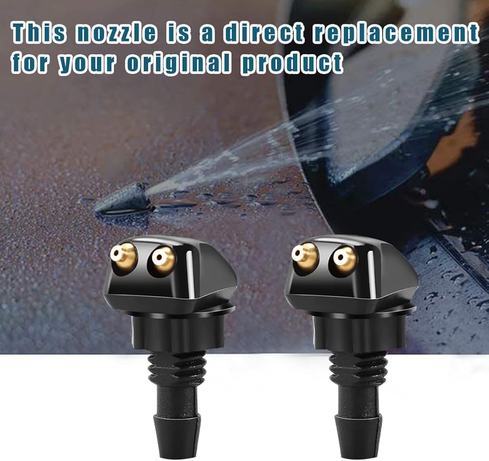 【Dual nozzle design】: Our product is designed with 2 nozzles, they can spray at the same time to effectively keep your windshield clean and your view clear when it is covered with contaminants. The design of this nozzle kit can solve your trouble when the windshield is dirty, reduce the disadvantages in driving and ensure safe driving.