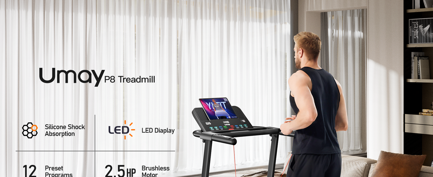 【Silicone Shock Absorption】Featuring dual silicone shock absorbers, our treadmill provides exceptional cushioning and knee protection. These absorbers optimize shock absorption, making your exercise routine comfortable and joint-friendly.