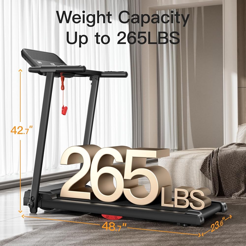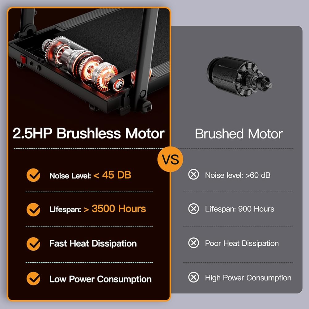 【Quiet Brushless Motor】Powered by a 2.5HP brushless motor, our treadmill reaches a maximum speed of 7.5MPH while operating quietly at 45dB. This ensures a smooth workout experience, extending usability and minimizing maintenance costs.