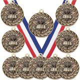• الأشرطة متضمنة: تشتمل كل واحدة من ميداليات الجوائز العشر على شريط رقبة قياسي بعرض 7/8 بوصة باللون الأحمر والأبيض والأزرق مع مشبك سهل الإطباق.