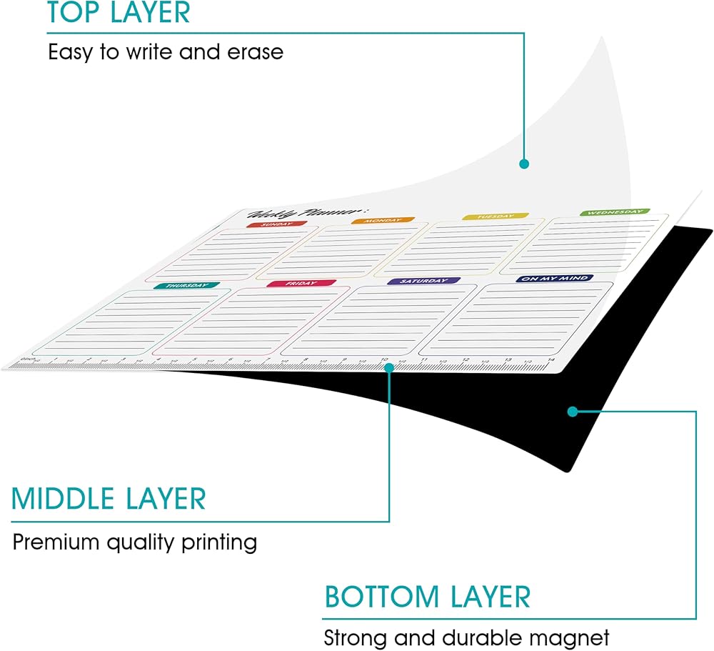 🥑 تقويم مبرد مغناطيسي سميك غير قابل للانزلاق: مغناطيس قوي ومتين يتيح لصق تقويم السبورة البيضاء على السطح والثلاجات المصنوعة من الفولاذ المقاوم للصدأ. لن يسقط تقويم السبورة أو يتحرك بسهولة إلا يدويًا.