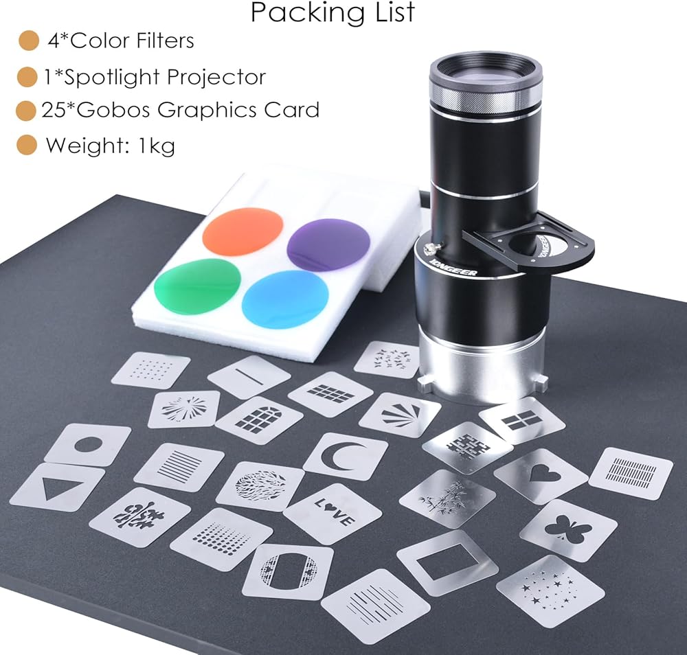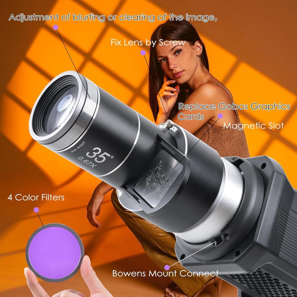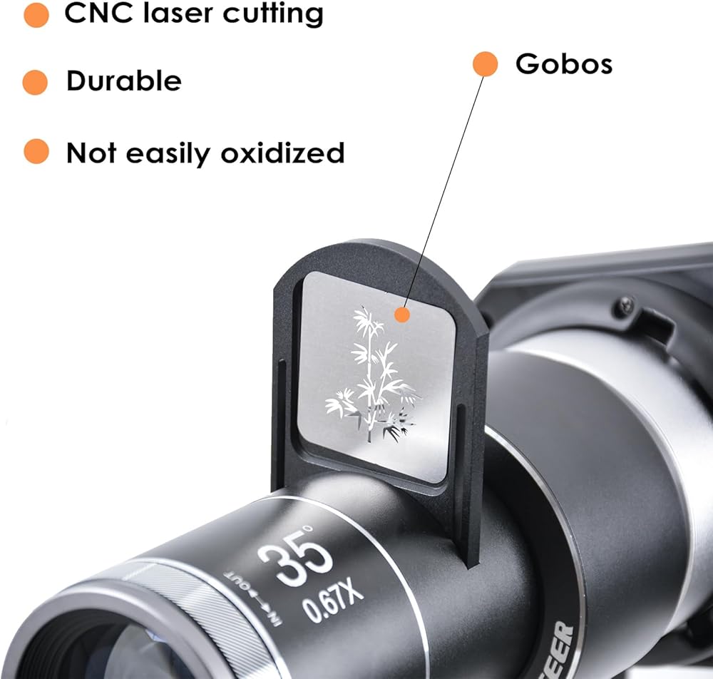 [الدقة في العرض] ارفع مستوى صورك باستخدام التكنولوجيا البصرية المتقدمة لدينا، مما يوفر أنماطًا حادة ودقيقة في كل أخدود. تعمل حلقة الضبط ذات اللون الفضي الموجودة على رأس الضوء على تحسين وضوح النمط، مما يسمح لك بضبط تأثيراتك بشكل دقيق من الناعمة والحالمة إلى الواضحة والمحددة.