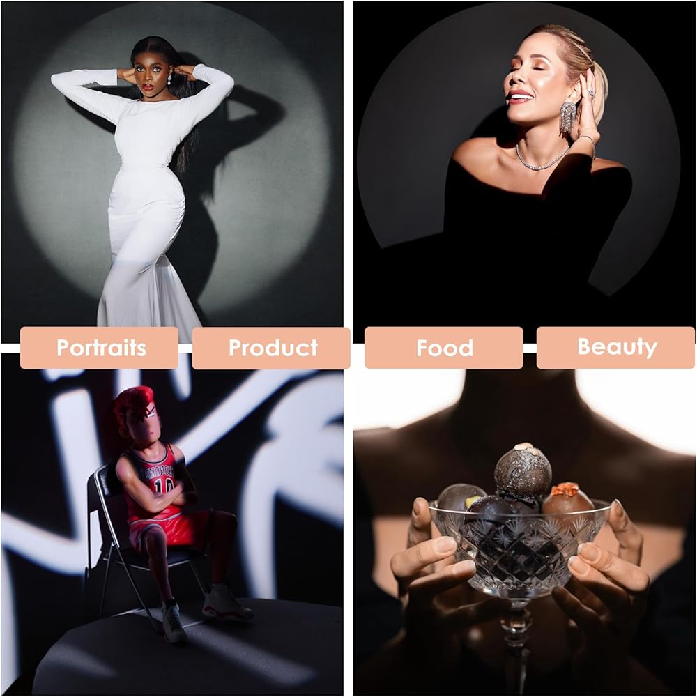 [أطلق العنان لفنانك الداخلي] انطلق في مغامرة بصرية مع حامل الأضواء الخاص بنا الذي يضم 25 بطاقة نقش و4 مرشحات ألوان للتحكم في الإضاءة، دع خيالك ينطلق جامحًا أثناء إنشاء تأثيرات فريدة للطعام والمنتجات والصور الشخصية والإعلانات التجارية ومقاطع الفيديو. يجلب كل تأثير ذوقًا فنيًا مميزًا، ويحول اللحظات إلى تجارب بصرية غير عادية.