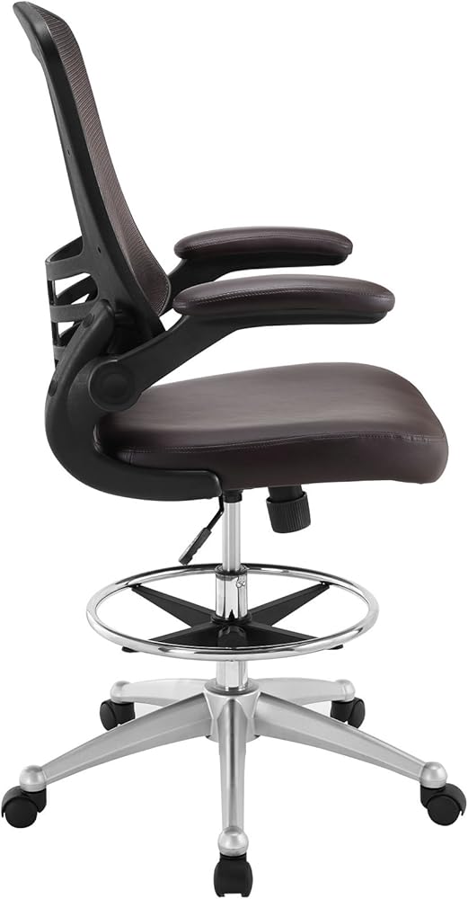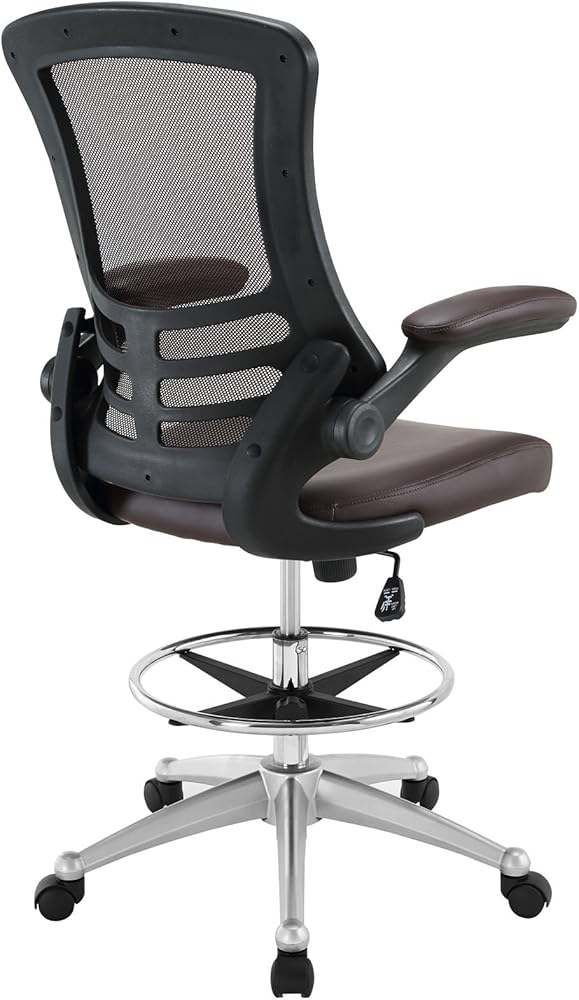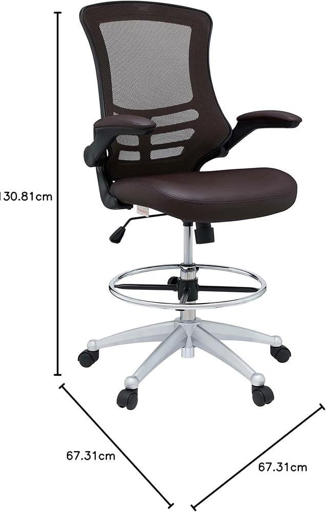 Chart new territory while seated from the comfort of the Attainment Drafting Stool. Attainment features a breathable mesh back for lower back lumbar support, padded waterfall Vegan Leather seat to ease pain and pressure around your thighs, flip-up padded arms, foot ring with extra tall gas cylinder, and securely locks in place with a user friendly seat tilt plus tension control knob. Attainment is a progressive minded drafting stool perfect for school, work, or home use. Seat Dimensions -19.5"L x 20"W x 22.5 - 30"H,Armrest Dimensions-11"L x 3"W x 2.5"H,Backrest Dimensions-21.5"W x 20.5"H,Cushion Thickness-3"H,Base Dimensions-26.5"L x 26.5"W