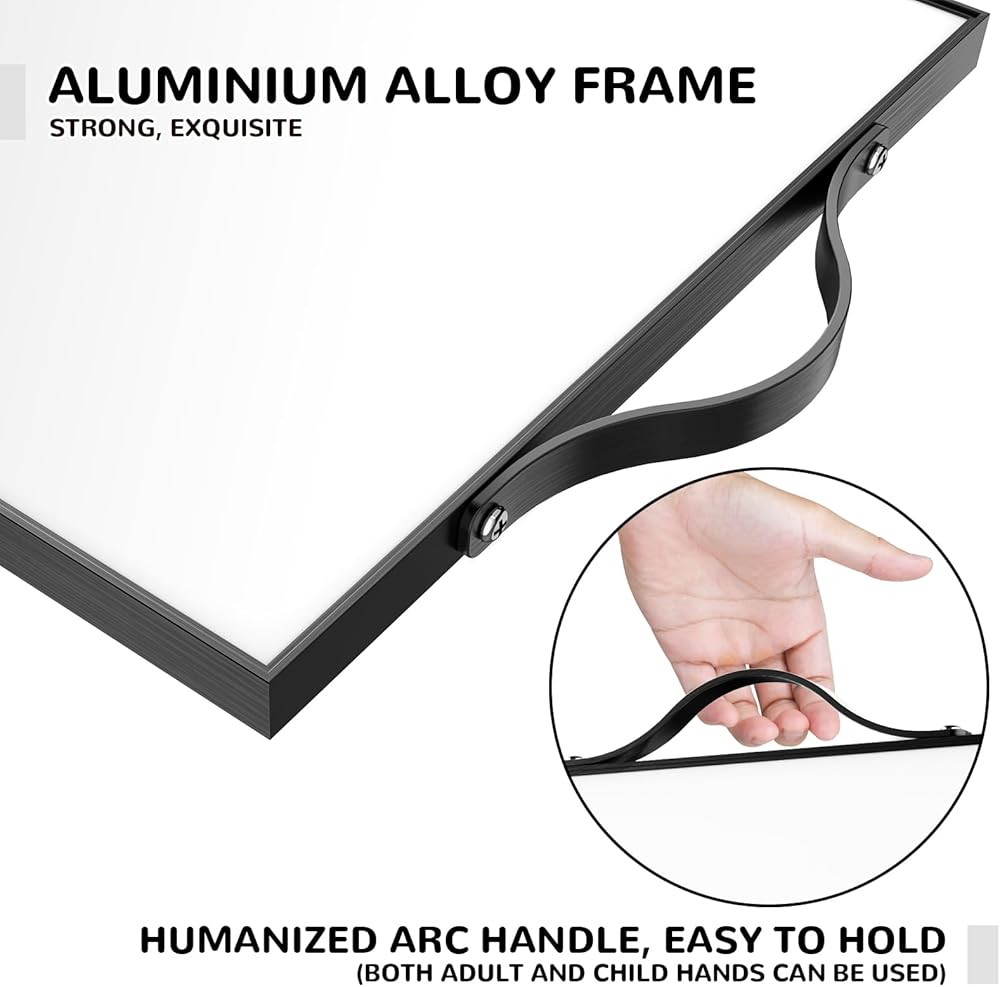 لوحة بيضاء صغيرة ذات إطار خاص: يضيف إطار الألومنيوم القوي ثباتًا إضافيًا إلى السبورة البيضاء على الحائط. يوفر تصميم الإطار الرفيع للوحة المغناطيسية أقصى مساحة للكتابة، ويحسن استخدام المساحة في منزلك. التصميم النحيف يجعل تعليق لوح المسح الجاف إضافة جميلة إلى كل مكان تقريبًا، مثل المنازل والمكاتب والمطابخ والفصول الدراسية والمساكن والمقصورات.