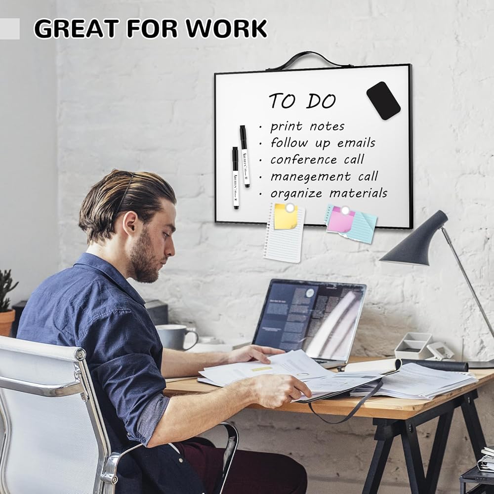 لوح مسح جاف صغير، 16 بوصة × 12 بوصة لوحة بيضاء صغيرة محمولة بإطار من الألومنيوم، لوحة مغناطيسية للجدار، لوحة مسح جافة مغناطيسية مع حامل، للقيام بقائمة لوحة بيضاء للمكتب، المنزل، المطبخ، المدرسة، الأطفال