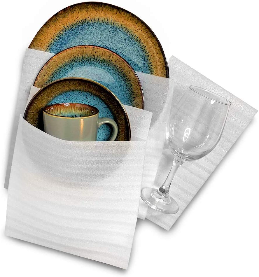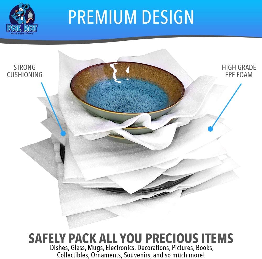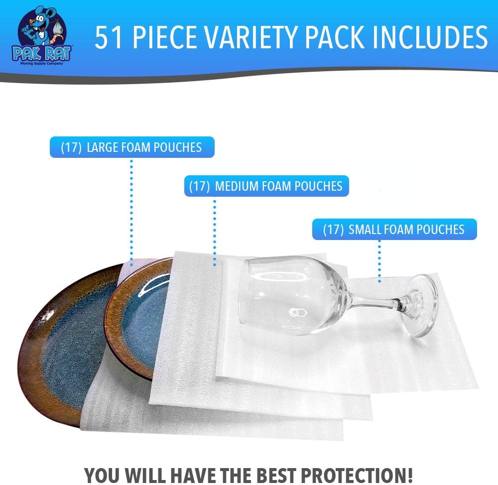 (3 أحجام) 50 قطعة من الأكياس أو الملاءات الإسفنجية الفاخرة للتغليف، وغطاء حماية للأطباق والأطباق والزجاج والأكواب والأقداح والأواني الصينية والبورسلين والأشياء الثمينة لنقل وتخزين اللوازم من باك رات