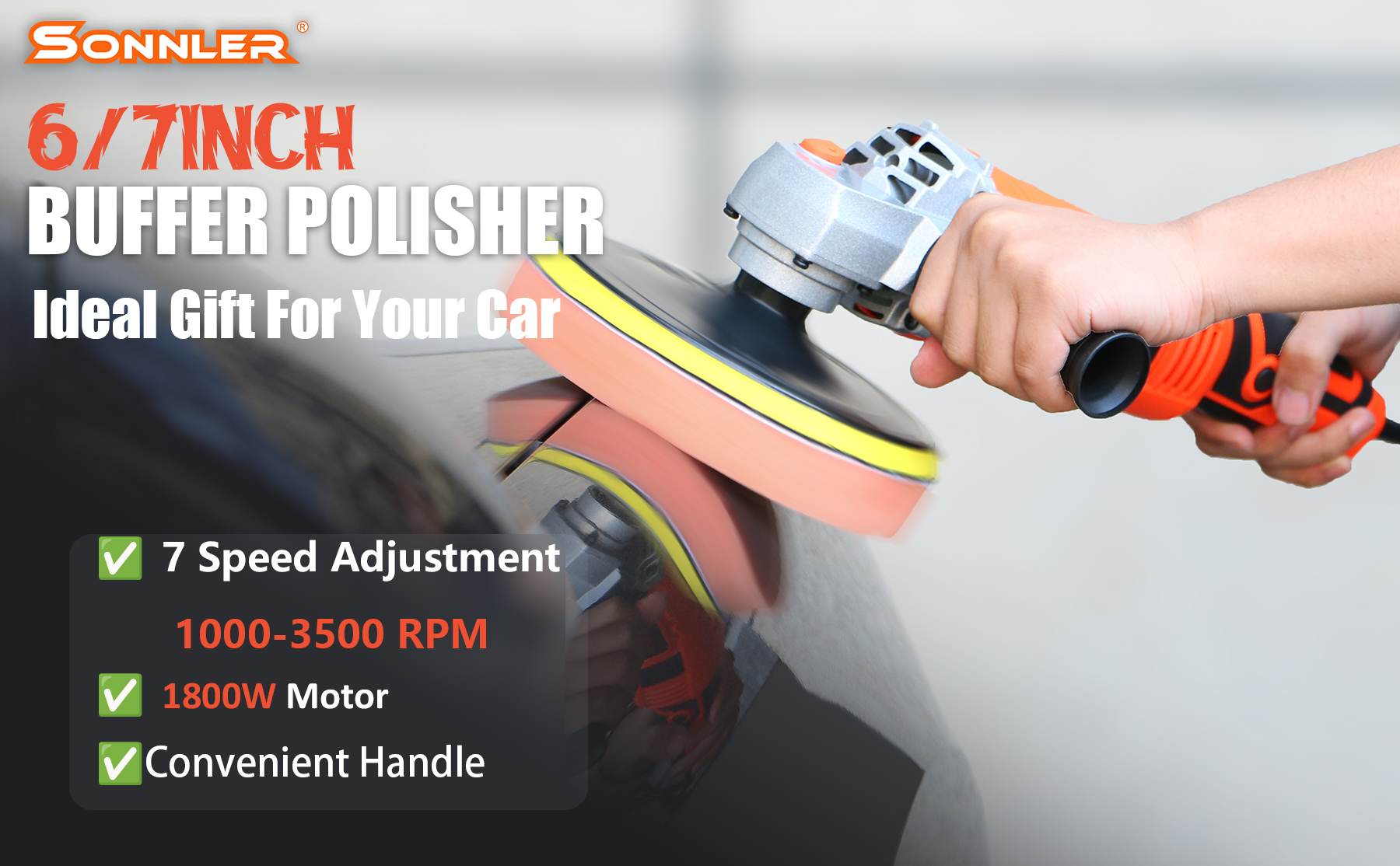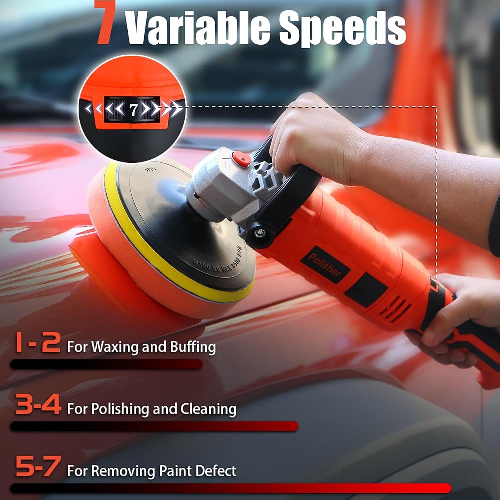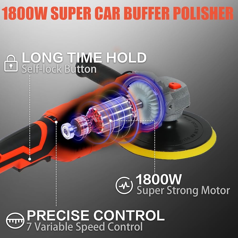 ارفع مستوى لعبة تفصيل سيارتك باستخدام أداة التلميع الدوارة المثيرة لدينا اليوم! مع محرك مثير للإعجاب بقدرة 1800 واط وهيكل من الأسلاك النحاسية النقية، يوفر جهاز تلميع السيارات SONNLER متانة لا مثيل لها وأداء قوي. يضمن هيكل فرشاة الكربون المبتكر المدمج السلامة وعمر الخدمة الممتد، مما يزيل أي مخاوف من إيقاف تشغيل الماكينة المفاجئ أثناء التلميع المداري.