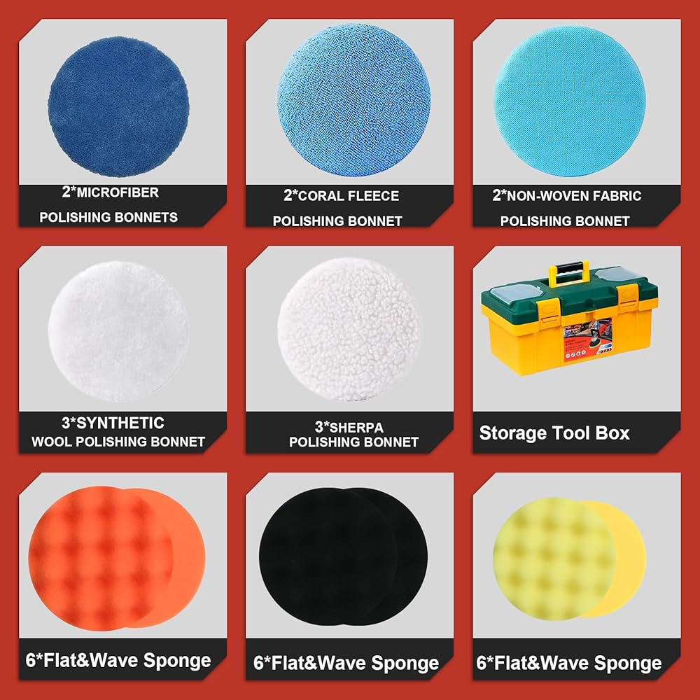 【استخدام واسع】توفر مجموعة شمع تلميع العازلة من سونلر جميع الملحقات التي تحتاجها، ويمكنك استخدام ورق الصنفرة والوسادات الإسفنجية لإزالة الشعر بالشمع، ووسادات تلميع الصوف، وغطاء تلميع من الصوف المرجاني لتلميع أي شيء تريده. يعتبر هذا الملمع الدوار مثاليًا للتلميع والصنفرة وإزالة الشعر بالشمع وختم الزجاج وإزالة الدوامات والخدوش الضحلة وزيت الشمع الزائد والعيوب من المركبات. يمكنك أيضًا استخدامه على الأثاث والسيراميك والخشب والألمنيوم والفولاذ والبلاط والبلاستيك والمزيد.