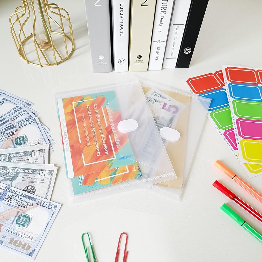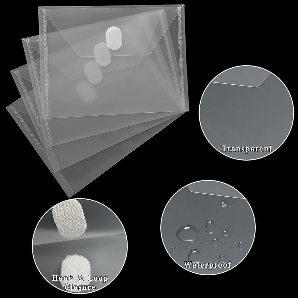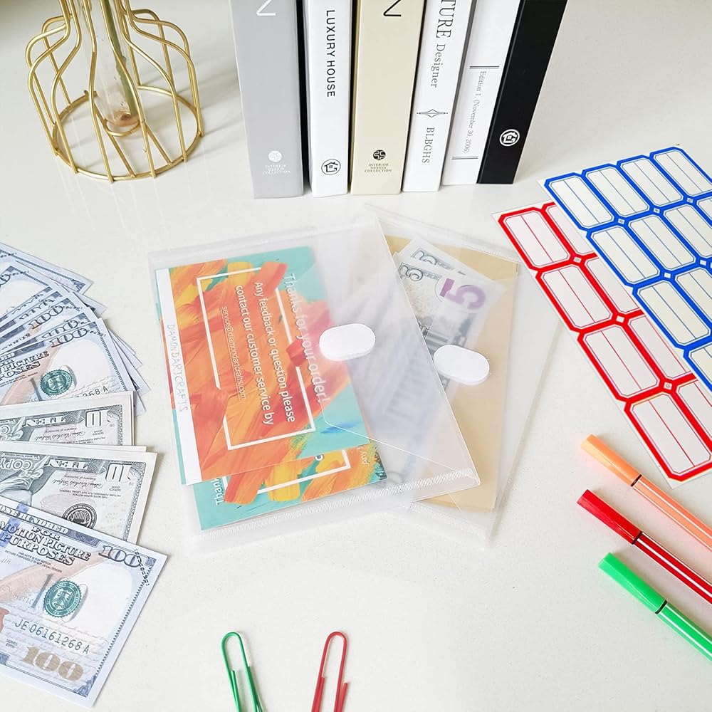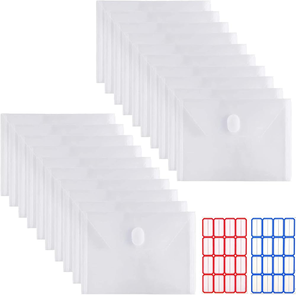20 عبوة من مظاريف YoeeJob البلاستيكية مع إغلاق بخطاف وحلقة، مجلدات مظاريف بولي شفافة 5x7 قسيمة إيصالات Oganizer