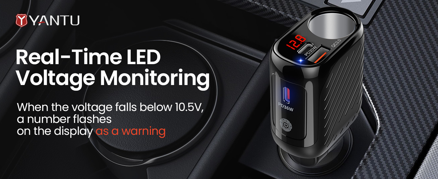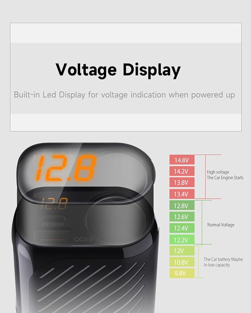 مفتاح طاقة مستقل وشاشة عرض الجهد الكهربي LED - يتوافق محول ولاعة السجائر مع مفتاحه الفردي لتوفير الطاقة وحماية الأجهزة. مراقبة جهد البطارية في الوقت الحقيقي لحماية البطارية، وإطالة عمر خدمة البطارية