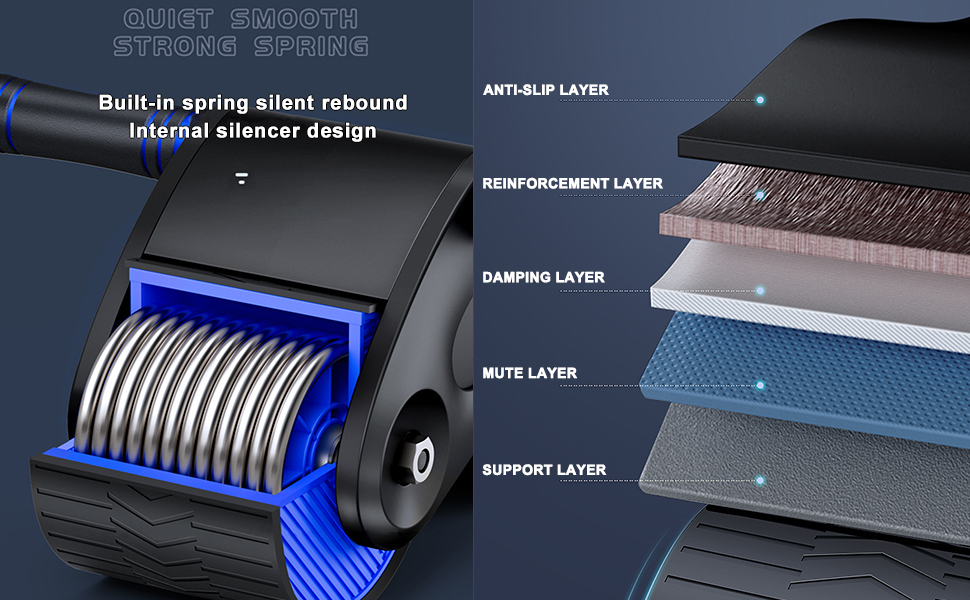 معدات تمرين فعالة: المقبض سهل الإزالة أو التركيب، وأكثر ملاءمة للحمل، مثالي للمنزل أو المكتب أو صالة الألعاب الرياضية! تحتوي العجلات المزدوجة على نوابض مدمجة، كما أن المقاومة الأكبر يمكن أن تمنع العجلات من الانزلاق أثناء التمرين. يمكنك ممارسة التمارين في أي وقت وفي أي مكان، مما يجعل لياقتك البدنية أكثر كفاءة.