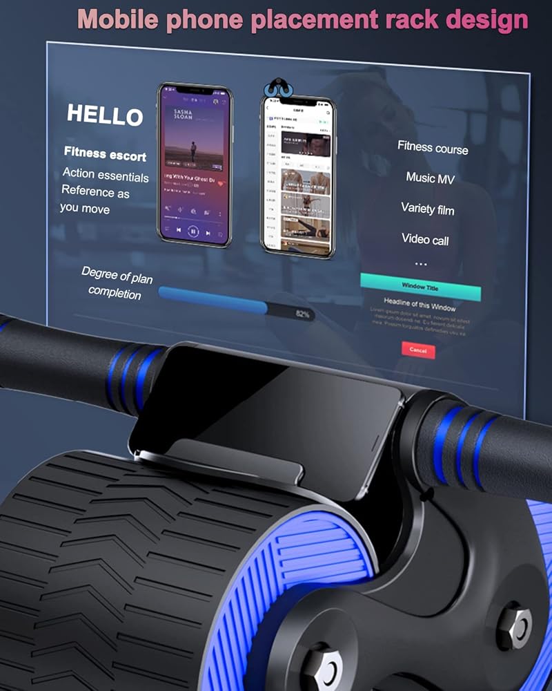 عجلة البطن الارتداد التلقائي: تعتمد هذه الأسطوانة تقنية الارتداد التلقائي سهلة الانزلاق، وتصميم العجلة المزدوجة، ووظيفة الارتداد التلقائي يمكن أن تحميك من الإصابة أثناء التمرين، خاصة للمبتدئين. وظيفة حامل الهاتف المحمول مناسبة لك للتمرين مع الفيديو التعليمي.