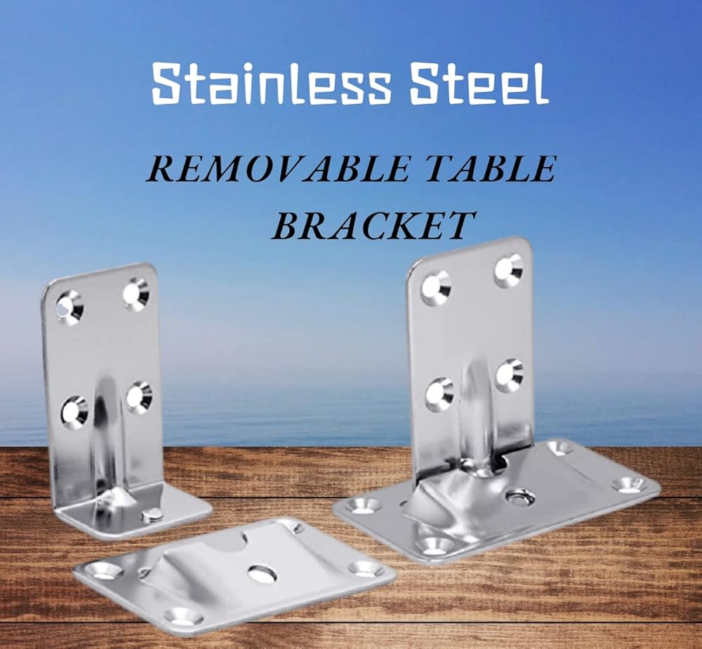 Stainless steel Removable Table Bracket Set -ECO Bright Treatment -Easy fitted and removed Perfect for Boat/RV/House and space saver project -Each Set of 2 wall brackets and 2 table brackets