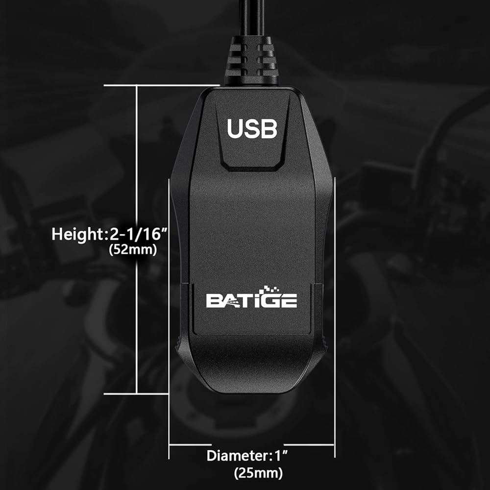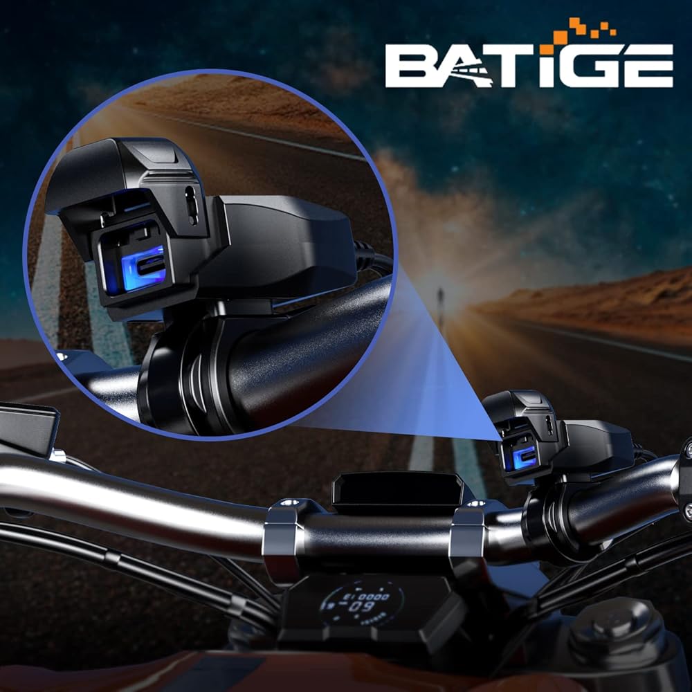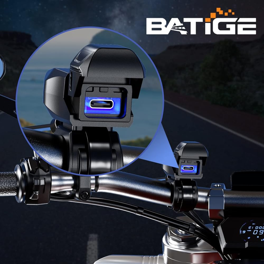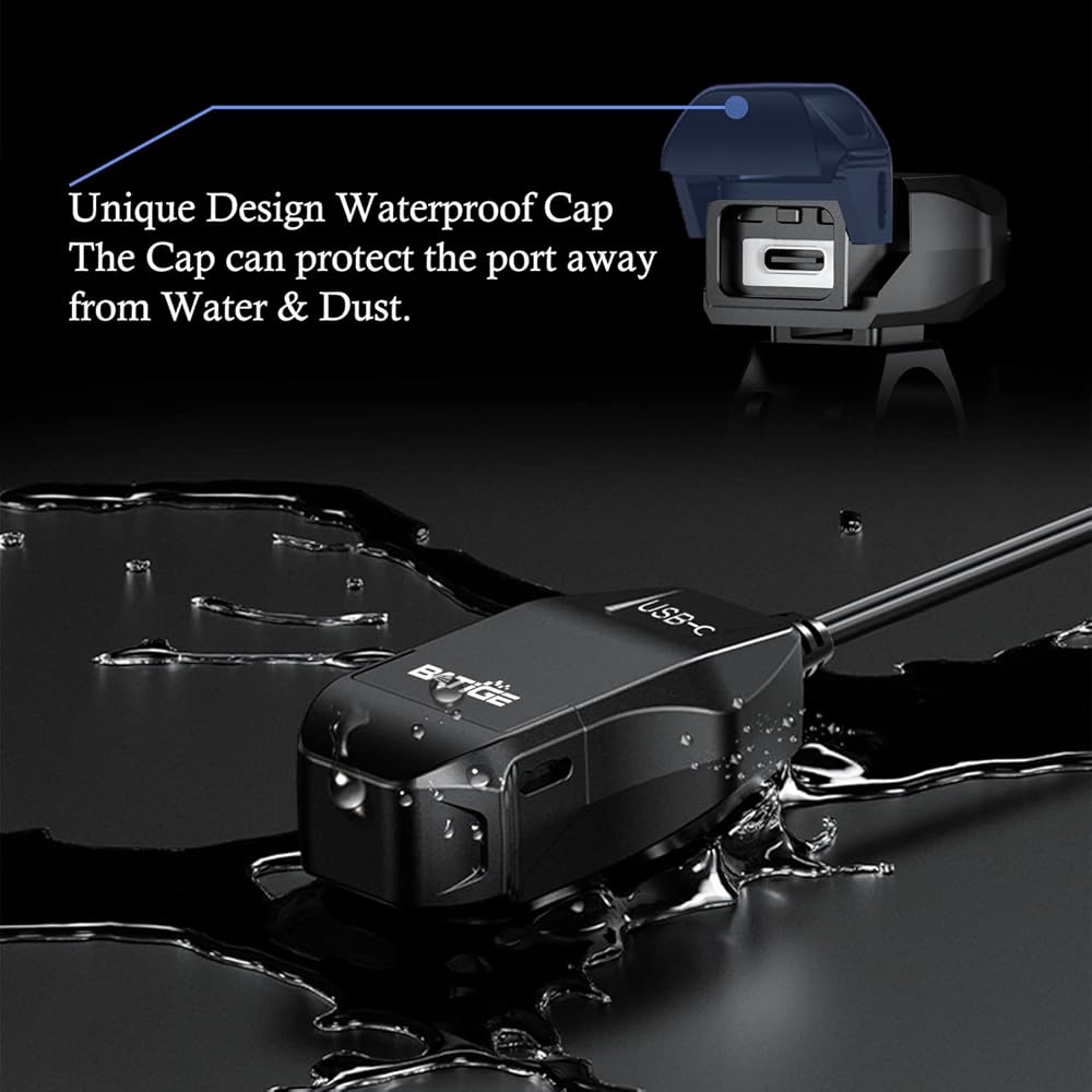 شاحن USB للدراجات النارية BATIGE SAE إلى USB محول USB C مقاوم للماء مع شاشة إضاءة LED، مفتاح تشغيل/إيقاف تلقائي، كابل 1.8 متر SAE لكاميرا الهاتف الذكي GPS