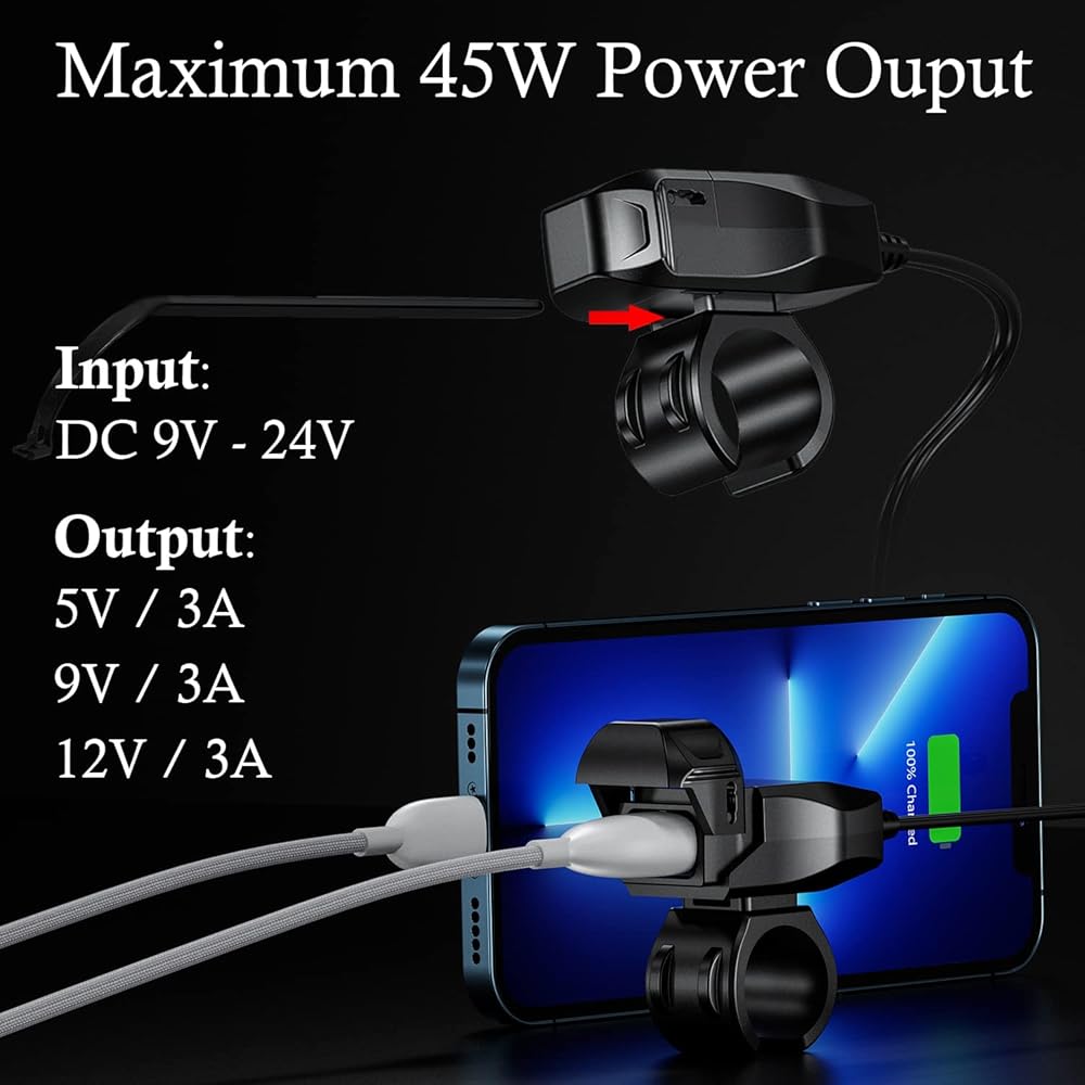 • تصميم خاص للدراجات النارية: يعتمد شاحن USB C للدراجات النارية من BATIGE SAE إلى USB تصميم اتصال سريع الإصدار SAE، الإدخال 9V-24V DC، الإخراج 5V/3A، 9V/3A، 12V/3A، مناسب للهواتف الذكية، iPad، الأجهزة اللوحية، GPS ، الكاميرا، أي جهاز يمكن شحنه عبر USB C.