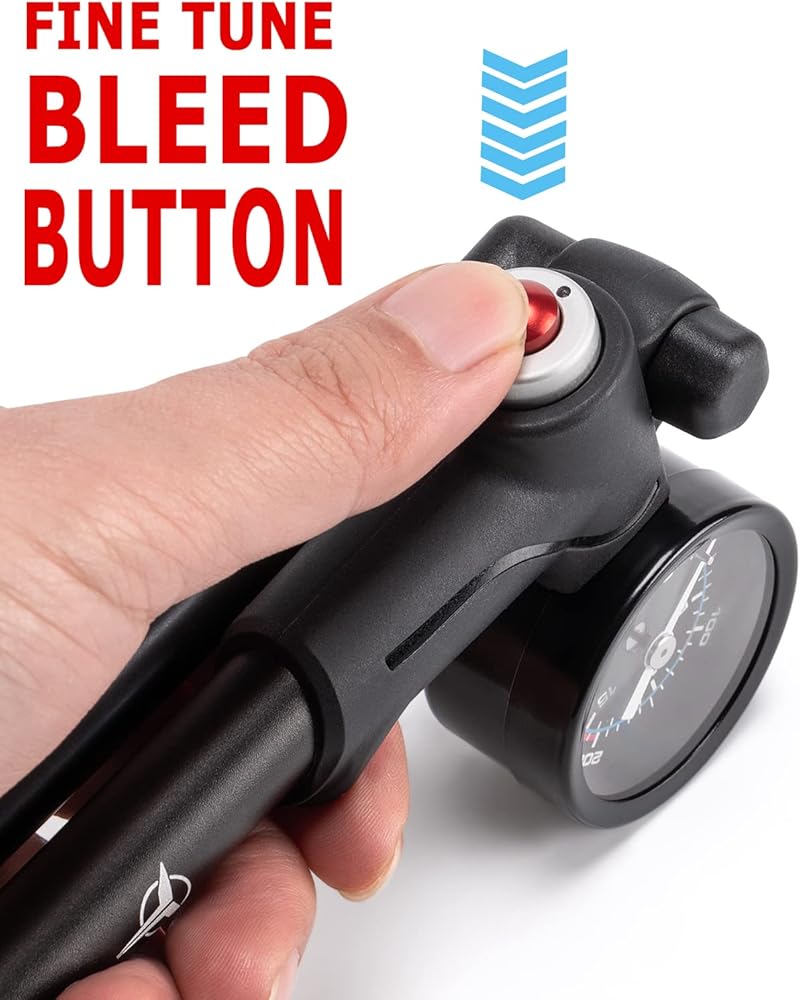 【الجودة والأداء】 - مضخة تعليق الدراجة مصنوعة من سبائك الألومنيوم عالية الجودة بآلة CNC مع أجزاء متينة ودقيقة، والتي تم تصميمها لتدوم طويلاً، بالإضافة إلى ذلك، مع صمام شريدر مع رأس مضخة الضغط العالي المضادة للتسرب بمرحلتين يوفر صمامًا آمنًا. اتصال عند الضخ و"عدم تسرب الهواء" عند إزالته.