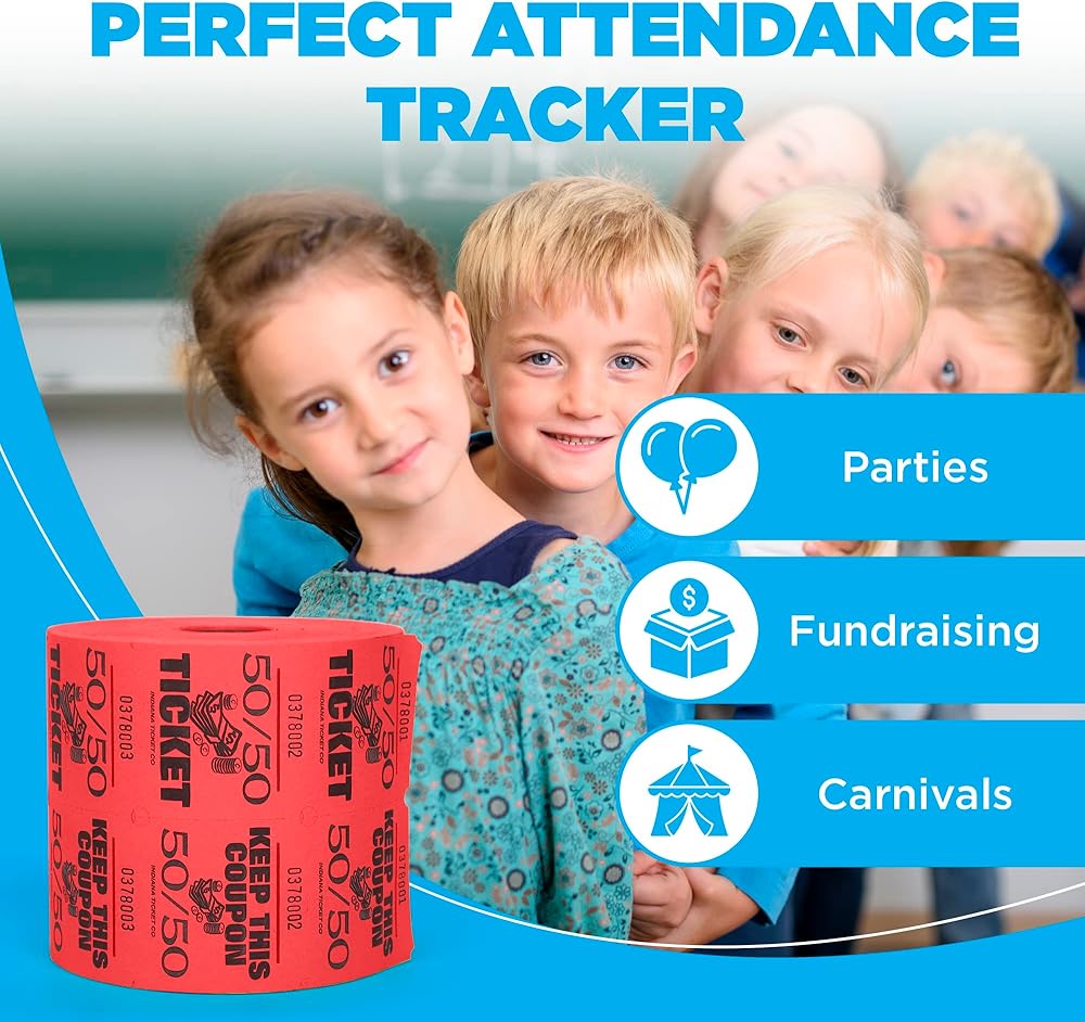 EASY TO TEAR, MADE IN USA - Premium quality perforated tickets roll printed on thick card stock to ensure a clean tear along the perforation. The roll of tickets with tear away stubs is 2" x 4" and split into 2" x 2" halves. The tickets are easy to tear cleanly off every time.