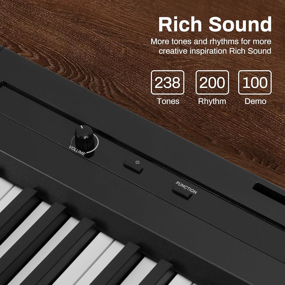 🎹[الملاءمة]: يتميز البيانو الرقمي AODSK S-300 بـ 88 مفتاحًا شبه مرجح ومجموعة واسعة من 238 نغمة عالية الجودة، مما يوفر تجربة لعب واقعية ومتنوعة للموسيقيين من جميع المستويات.